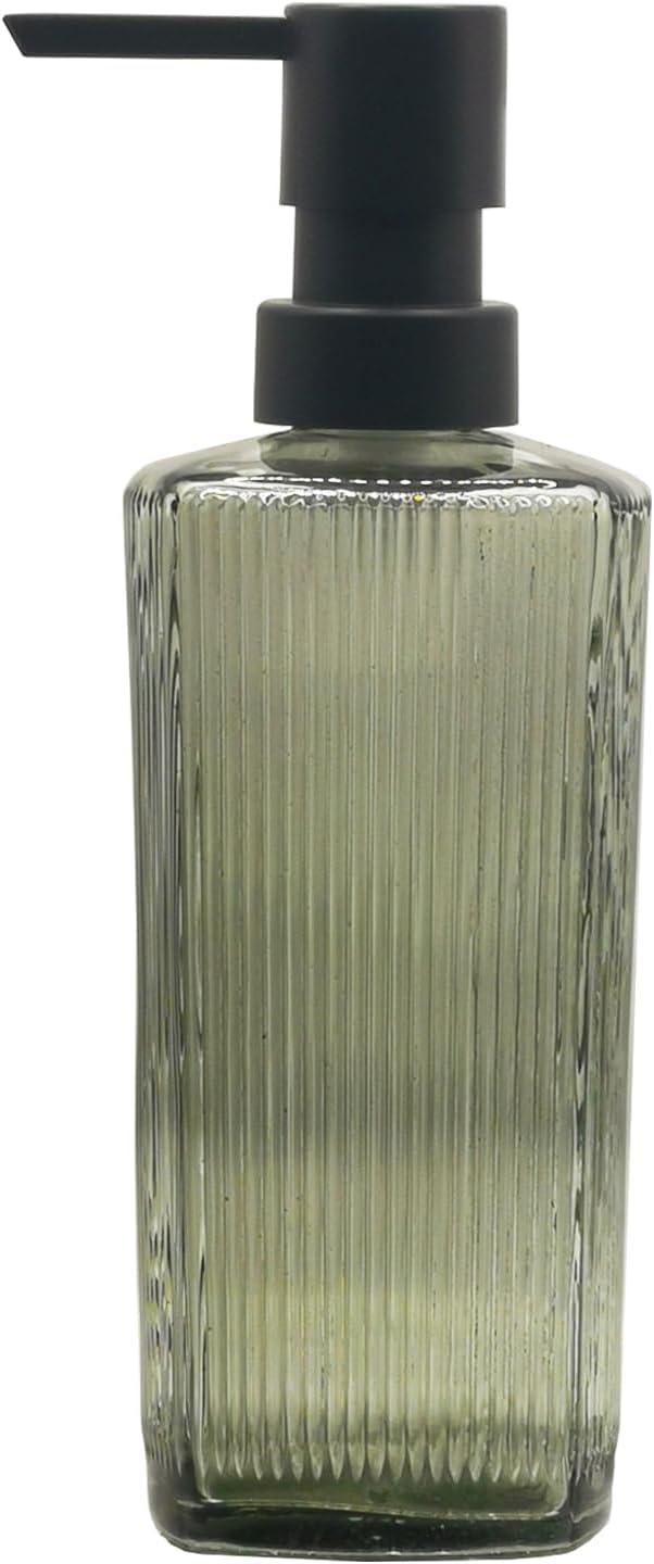 Green Glass Soap Dispenser with Black Pump, 12oz Refillable Liquid Hand Dispenser, Lotion Dish Soap Dispenser for Modern Home Decor, Bathroom, Kitchen Countertop, Hotel
