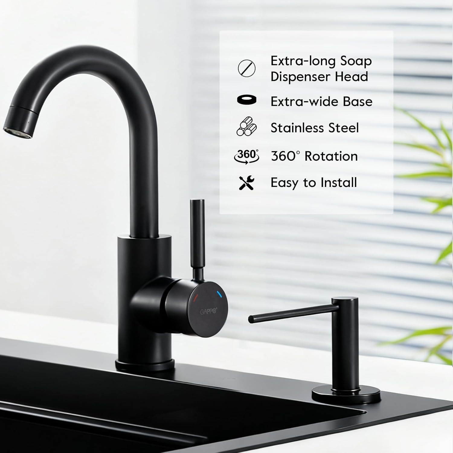 GAPPO Soap Dispenser for Kitchen Sink, Built in Sink Soap Dispenser, Matte Black Stainless Steel Pump Head, Lotion Dispenser with Refillable 17 OZ Bottle