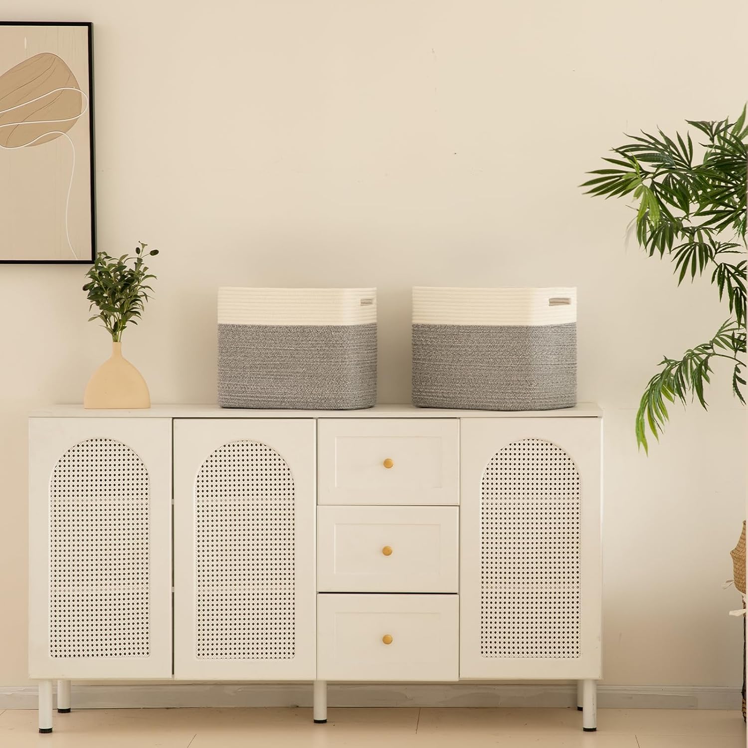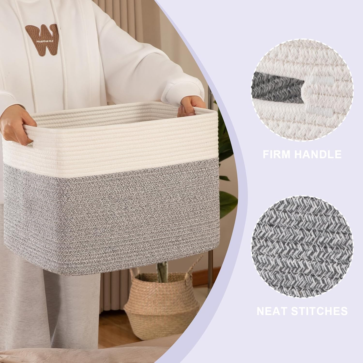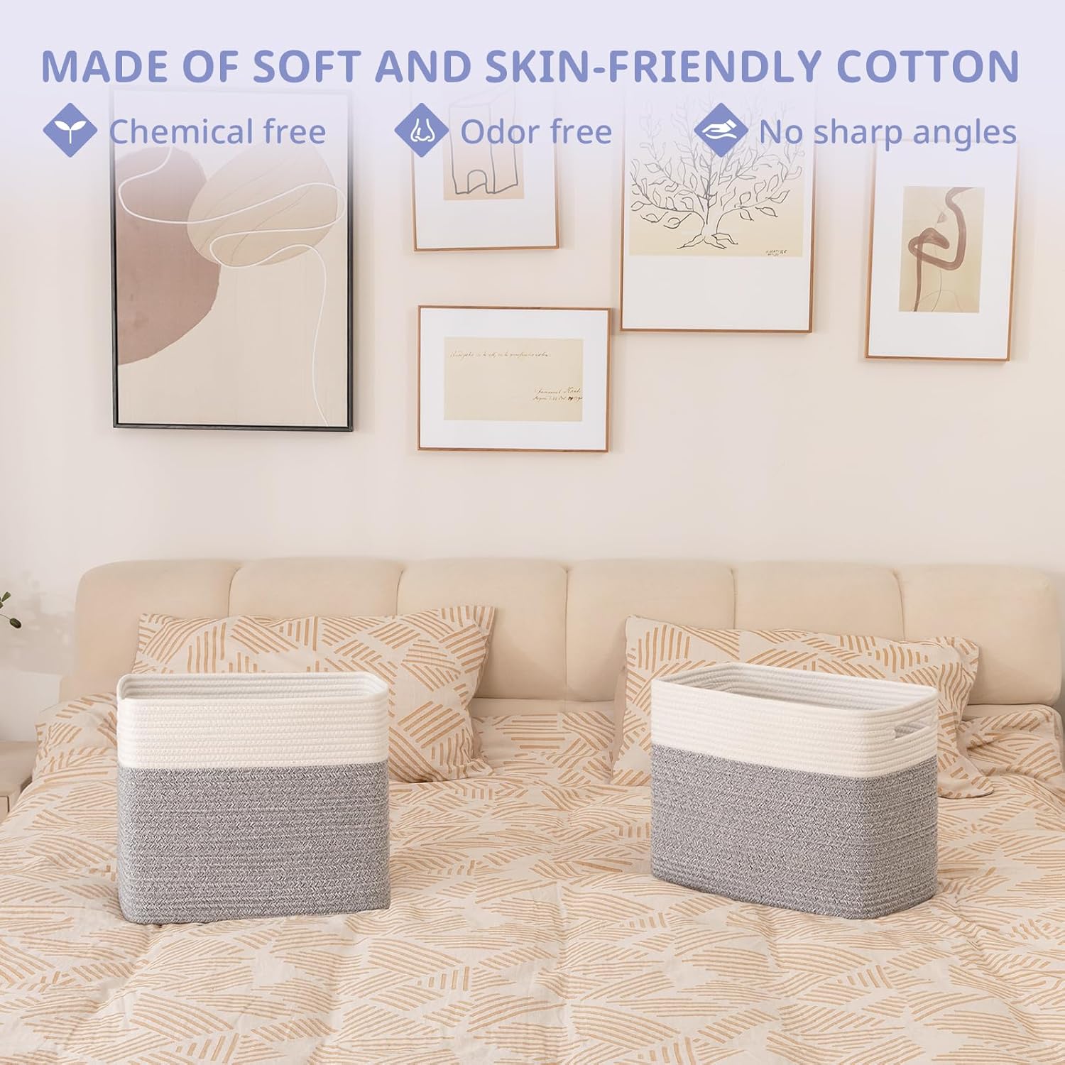 - 100% Cotton Rope Storage Baskets:OIAHOMY storage bins are made of high-quality natural cotton, chemical free and safe for kids and pets. It will not scratch your furniture and floor and more firm than plastic basket
