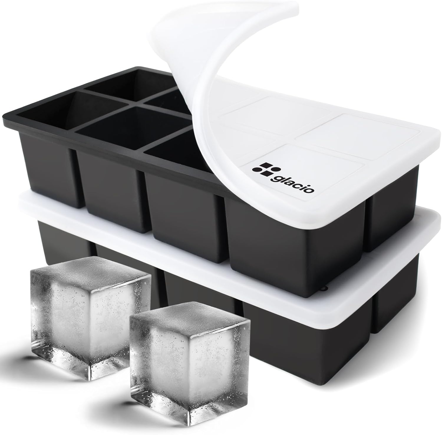 glacio Ice Cube Molds โ 2-Pack Silicone Trays for 8 Large Square Cubes โ Slow-Melt Ice for Whiskey, Cocktails, Coffee & More