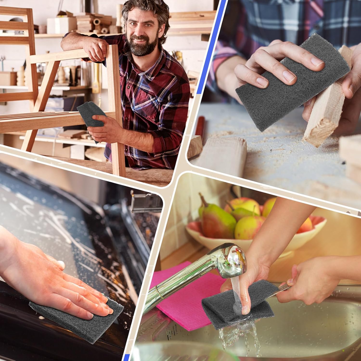 - Flexible Usage: our general purpose hand pads remain tough and flexible, and can be folded into different sizes. Just simply hold the pad by hand and apply moderate pressure to the surface for effective sanding or scouring, which are suitable for efficient cleaning on flat, irregular, or contoured surfaces