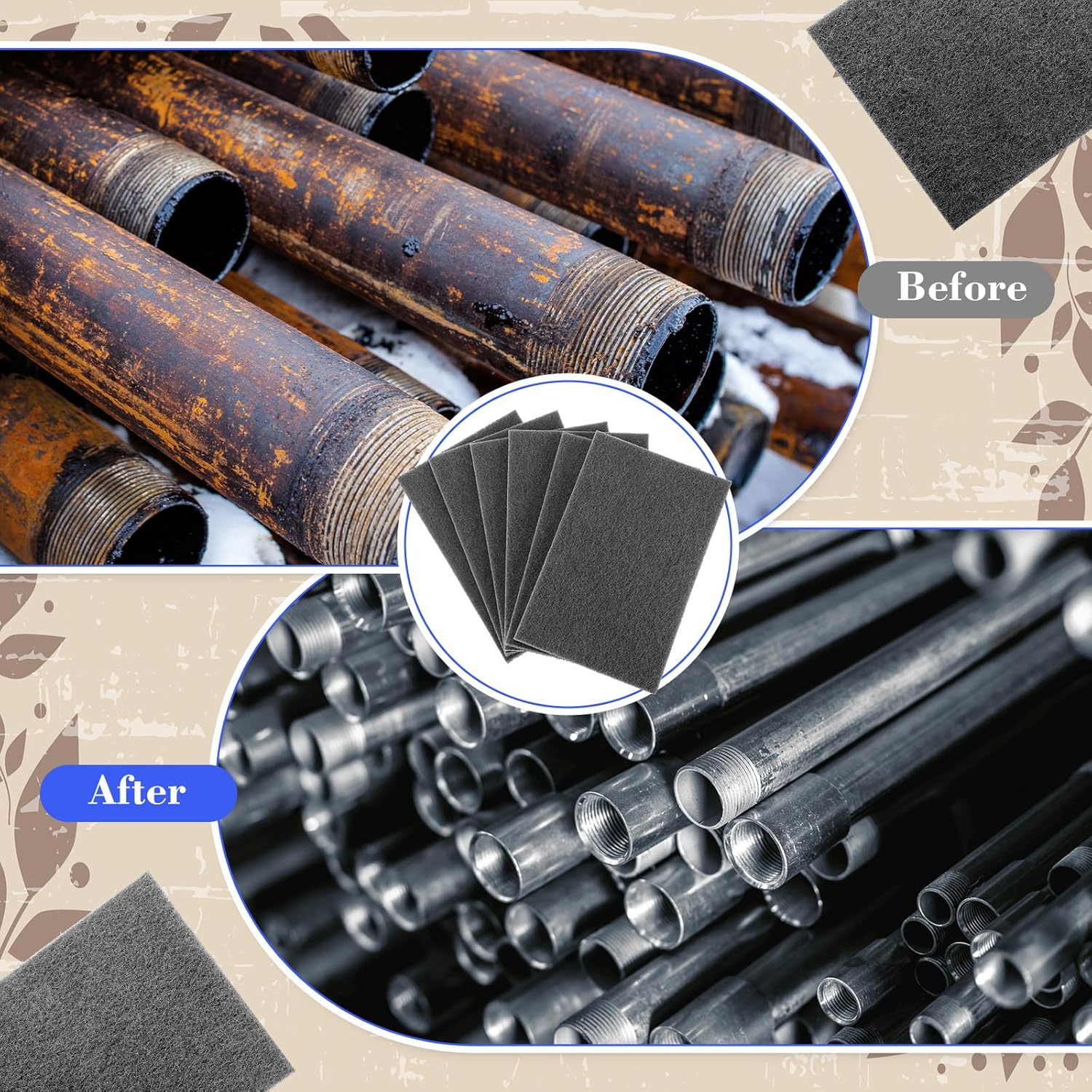 - Sufficient Pads Set: you will receive 50 pcs of grey abrasive pads, and they are extremely fine 300 mesh, easy to grind. The sufficient quantity and comprehensive package of 7447 scouring pads can be applied for a long time, eliminates the need of purchasing separate ones, at the same time adapted to the industrial and domestic use