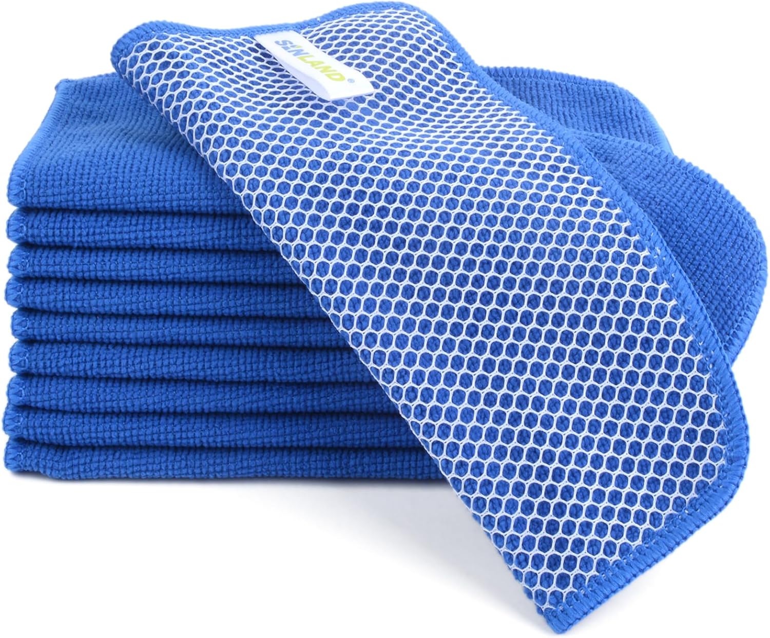 SINLAND Absorbent Microfiber Dish Cloths for Washing Dishes Best Kitchen Cloths Cleaning Cloths with Poly Scour Side 7.87Inchx7.87Inch 10 Pack Dark Blue