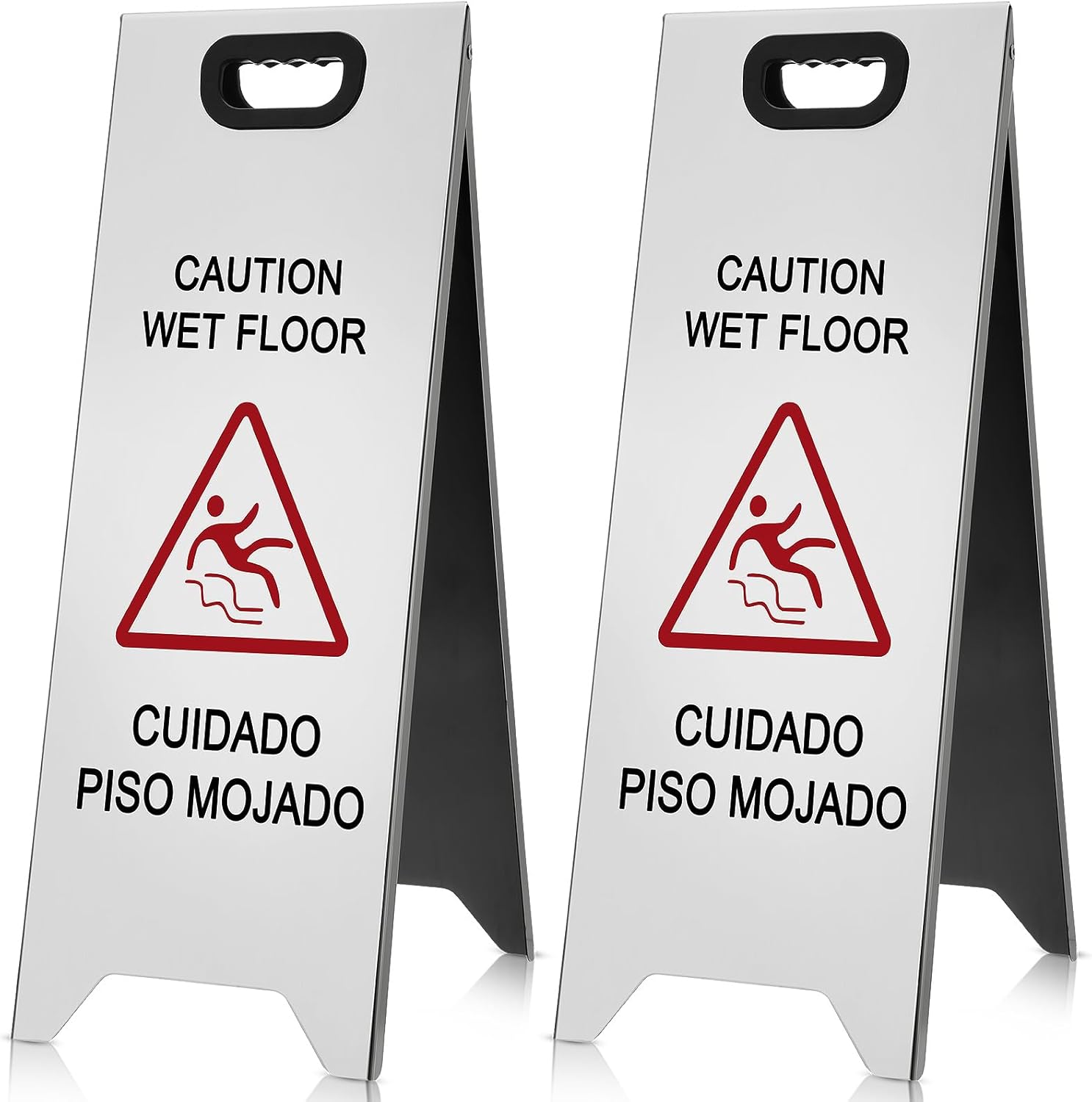 - Reflective Double Sided Print: each stainless steel wet floor sign is designed with reflective, double-sided print; The signs are printed with eye catching red pattern, which can be easily recognized; This ensures the sign is clearly visible from all directions, enhancing safety and reducing the risk of accidents
