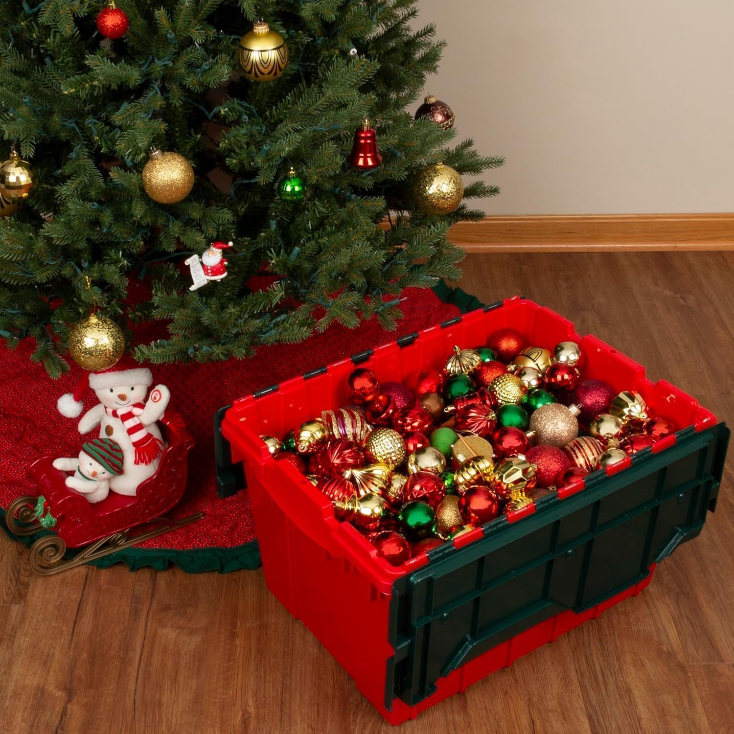 - CHRISTMAS DECORATION STORAGE: The red and green colors help distinguish these storage containers to use for holiday items like Christmas decorations, craft supplies, holiday seasonal clothing, and more