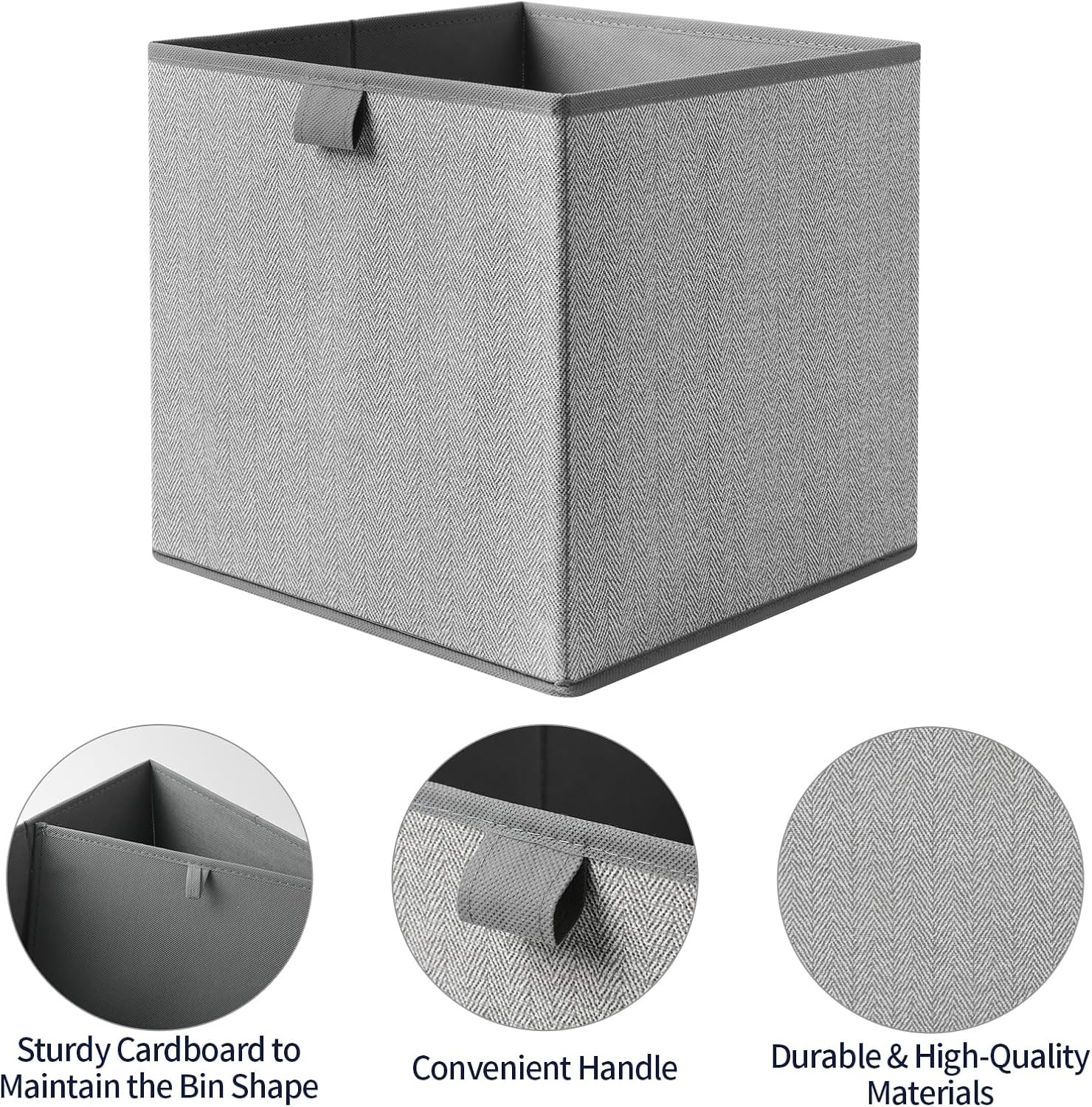 Storage Baskets, 11.8-Inch Woven Fabric Bins, Storage Cubes with Reinforced Handles, Organizer Bins for Closet Shelves, Foldable, for Toys, Clothes, Natural Beige (4PCS/Grey-11.8*11.8*11.8inch)