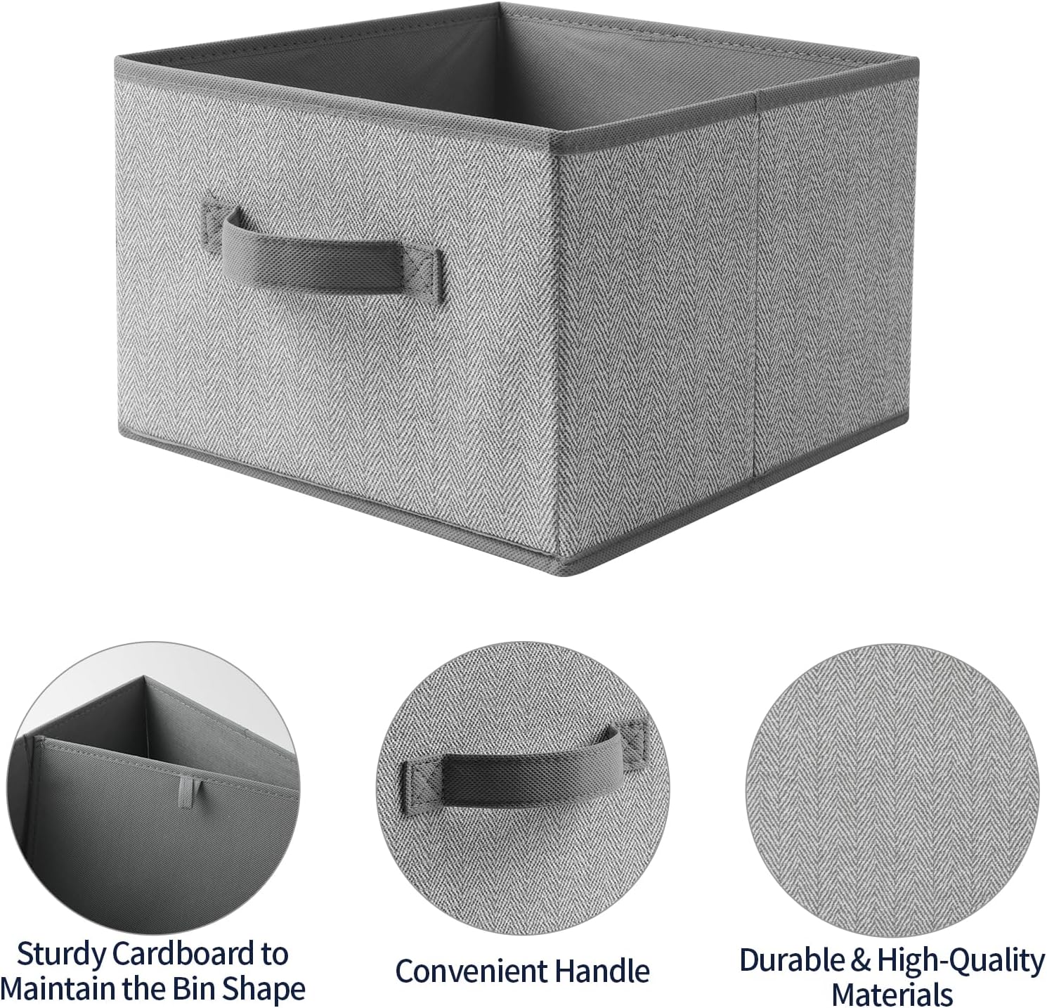 Storage Baskets, 11-Inch Woven Fabric Bins, Storage Cubes with Reinforced Handles, Organizer Bins for Closet Shelves, Foldable, for Toys, Clothes, Natural Beige (4PCS/Grey-11*11*7.8inch)