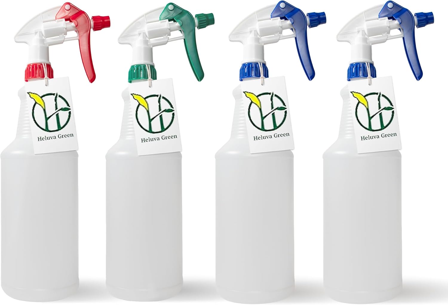Heavy Duty 32oz Plastic Spray Bottles for Cleaning - Large Empty Industrial Bottles for Gardening Solutions, Vinegar, Chemicals, Professional Cleaners - Adjustable Sprayer Nozzle - 4 Pack