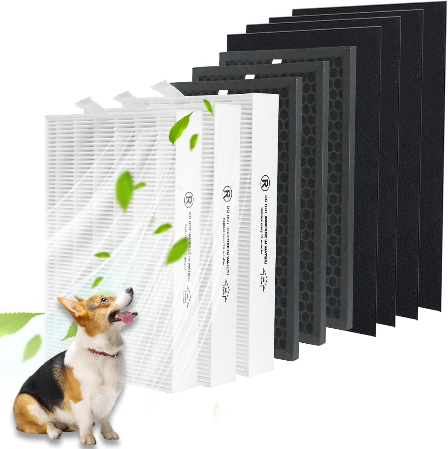 - Complete Value Packaging:Includes 3 True HEPA Filters, 3 Enhanced Filters (HRFSC1), and 4 Carbon Pre-Filters. Dimensions: HEPA (10.2”x6.5”x1.6”), Prefilter (14.2”x17.3”x0.2”). Perfect for long-term use, reducing frequent repurchase hassles.