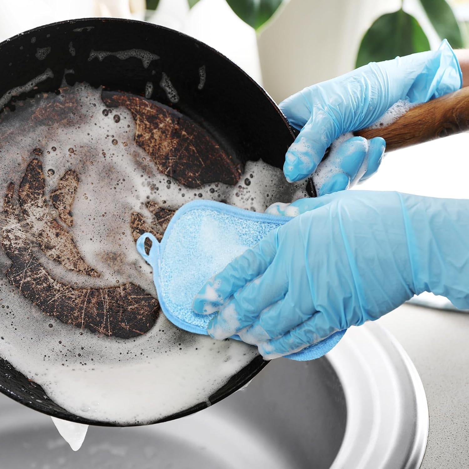 - Dual Action Scrubbing Sponge: microfiber dish sponges feature 2 sides design, one side is microfiber for cleaning and wiping, soft microfiber surface erases dirt effectively, absorbing moisture after cleaning, the other side is a non-abrasive scrubby for removing stuck-on food residue and tough grimes, ideal for non-stick cookware and no scratches