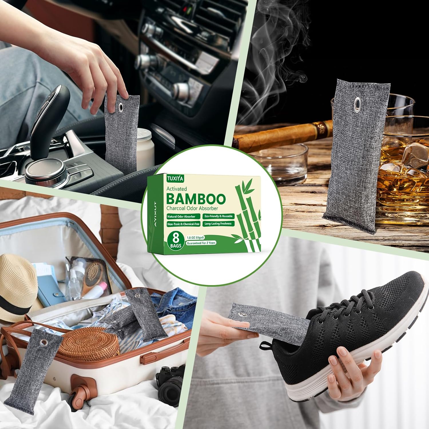 8Pack Activated Charcoal Odor Absorber, Odor Eliminator for Strong 0dor,Shoe Deodorizer,Bamboo Charcoal Air Purifying For in Car,Closet,Shoe, Basement(50g/1.77oz Each)