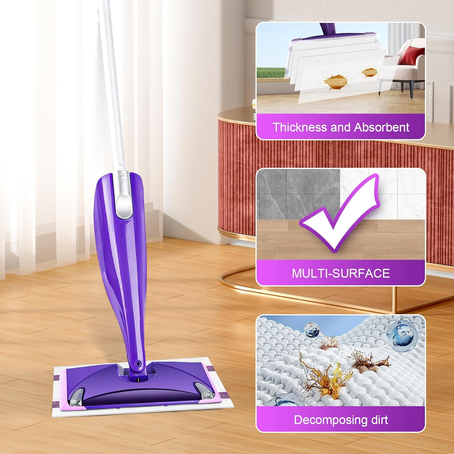 - Superior Absorbency and Thickness: Featuring a high-density absorbent core and High-end water molecule cotton,swiffer pads refill effectively lock in liquids, trap moisture, and neutralize odors. The waterproof backing ensures no leaks, providing rapid absorption and robust scrubbing power.