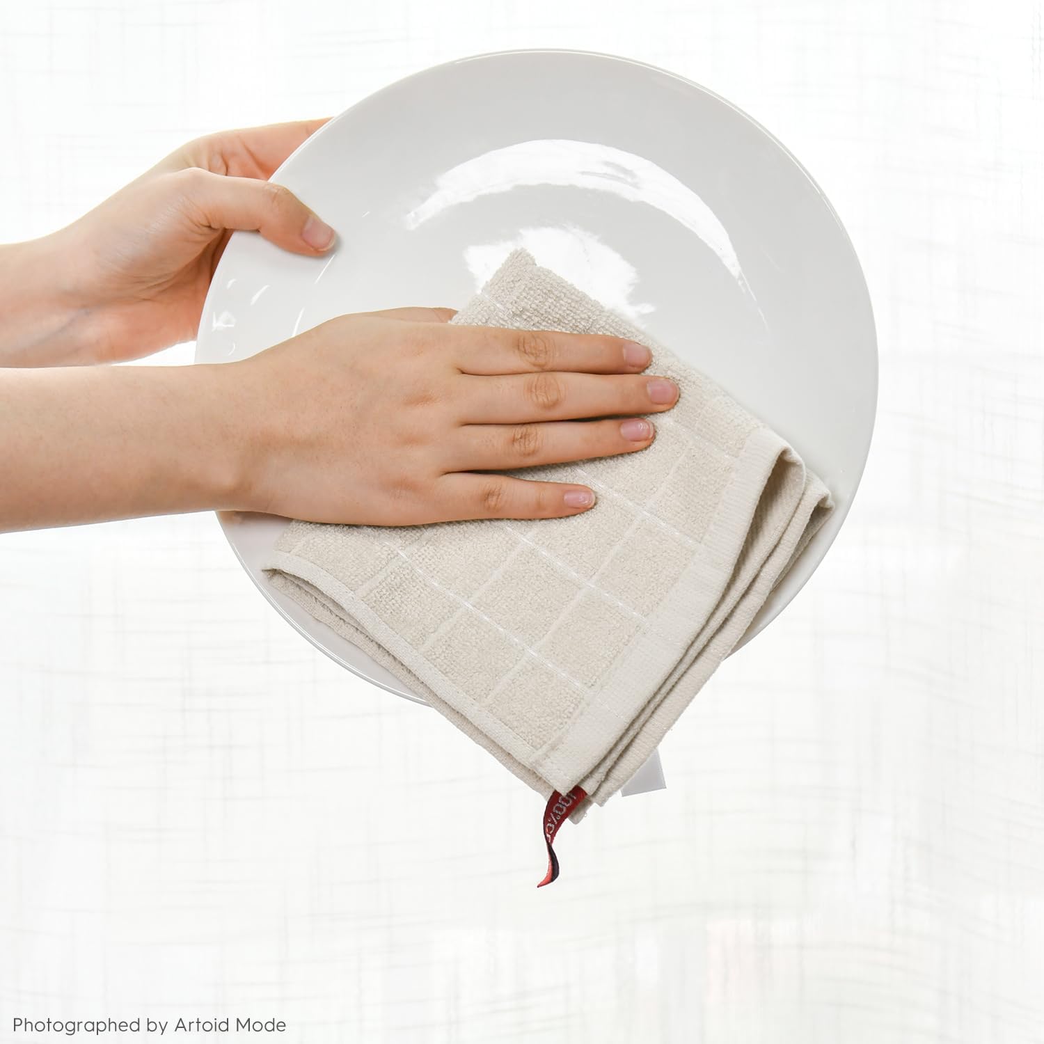 Artoid Mode Checkered Designed Cotton Beige Terry Kitchen Dish Cloths, 12x12 Inch Soft Absorbent Quick Drying Cleaning Kitchen Rags Set of 6