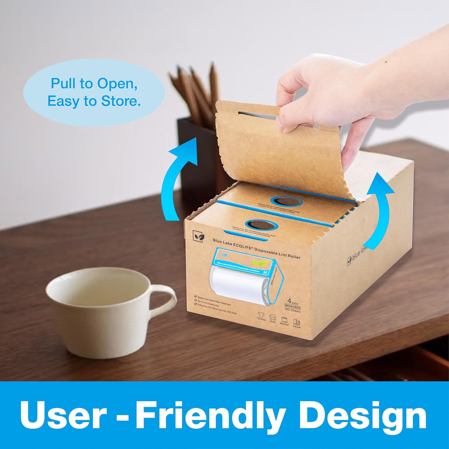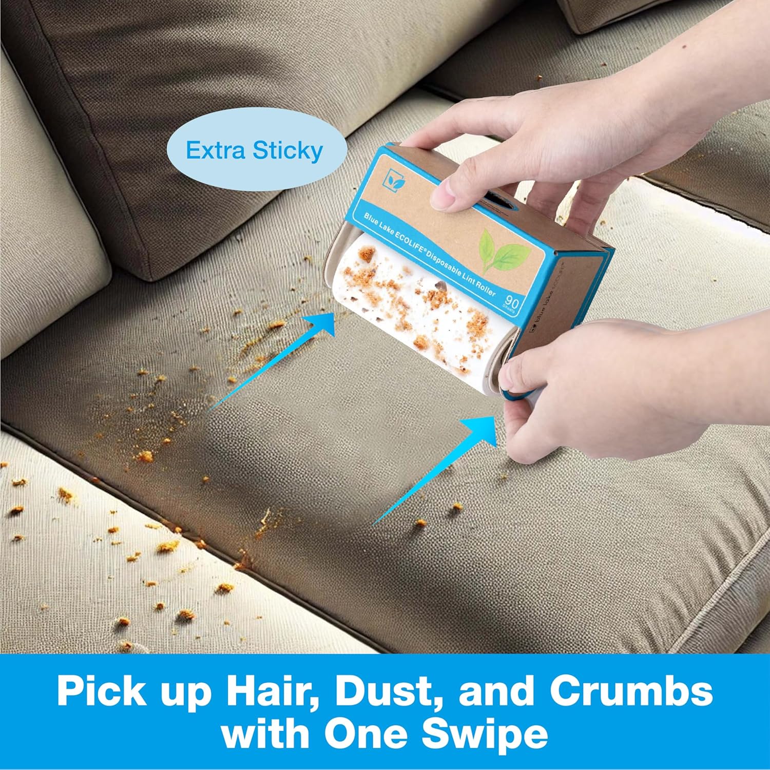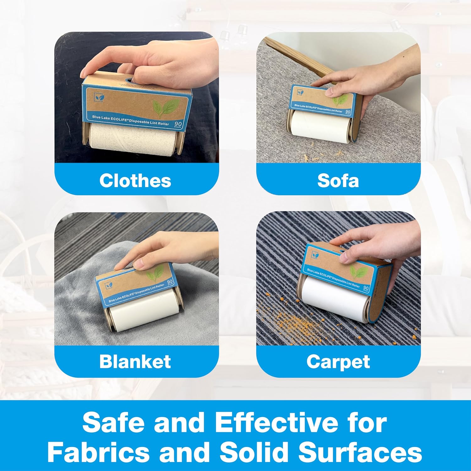 Blue Lake ECOLIFE Plastic-Free Lint Roller β 4-Pack (360 Sheets) | Extra Sticky & Eco-Lint Remover| Ideal for Clothes, Furniture & Carpet(4 Pack-360 Sheets)