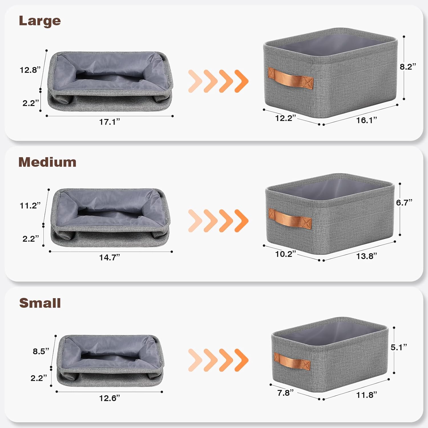 Large Storage Baskets for Shelves 3 Packs, Fabric Storage Bins for Shelves with Handles, 13.8'' L ×10.2'' W × 6.7'' H Collapsible Baskets for Organizing Clothes, Toy, Grey