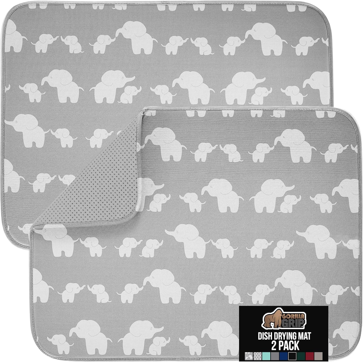 GORILLA GRIP Ultra Water Absorbent Microfiber Dish Drying Mat, Quick Dry Mesh, Slip Resistant Pad for Sink Dishes or Under Rack, Kitchen Counter Accessories, 16x18, Machine Wash, 2 Pack Elephants