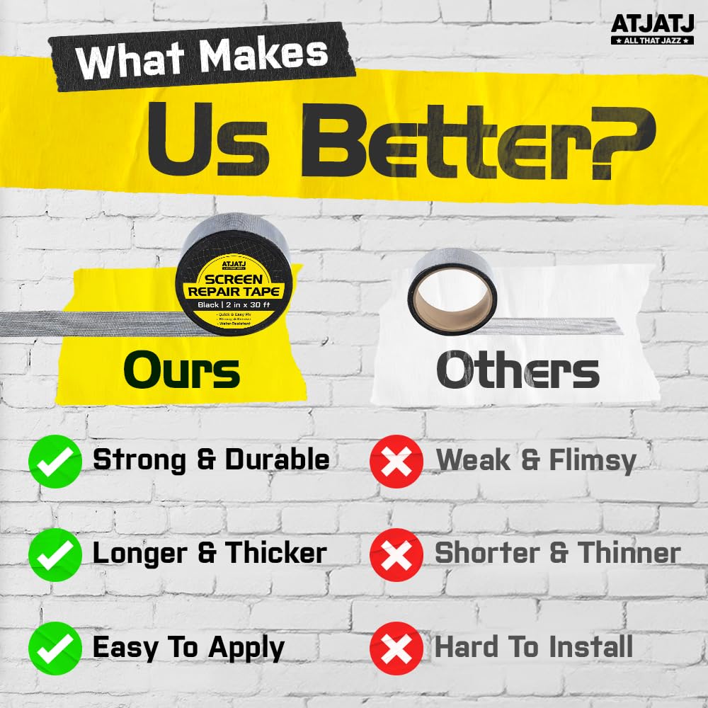 - 📌【 𝗠𝘂𝗹𝘁𝗶-𝗦𝗰𝗿𝗲𝗲𝗻 𝗨𝘀𝗲 】: Fix screen tears, tents, awnings, RV covers, tarps, patio screens, and fabric with strong adhesive tape. Perfect for home, outdoor, and DIY repair projects.