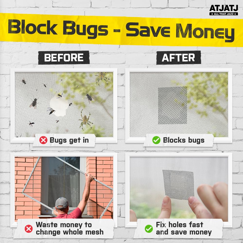 - 📌【 𝗤𝘂𝗶𝗰𝗸 & 𝗘𝗮𝘀𝘆 𝗥𝗲𝗽𝗮𝗶𝗿 】: Quick repair tape for screens, tents, and patio mesh. Cut, peel, and stick without tools for instant, mess-free screen and fabric repairs—ideal for home fixes.