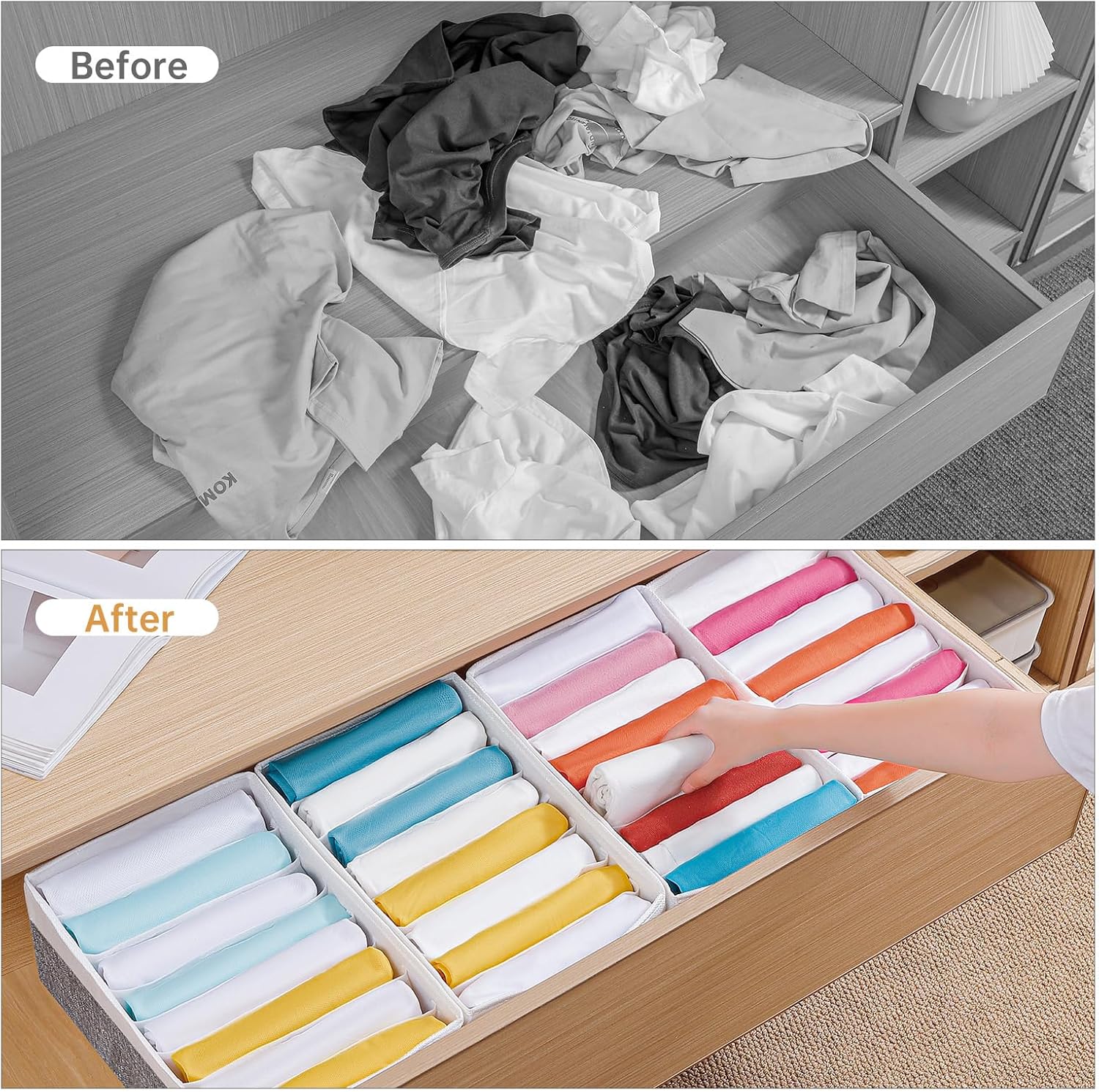- 【8 Grids Divider】Each wardrobe organizer is divided into 8 separate grids, one grid, and one item, which can keep your clothes and closet neat and tidy and easy to pick and place in a short time. Plus, the foldable and stackable design can greatly improve the utilization of wardrobe space.