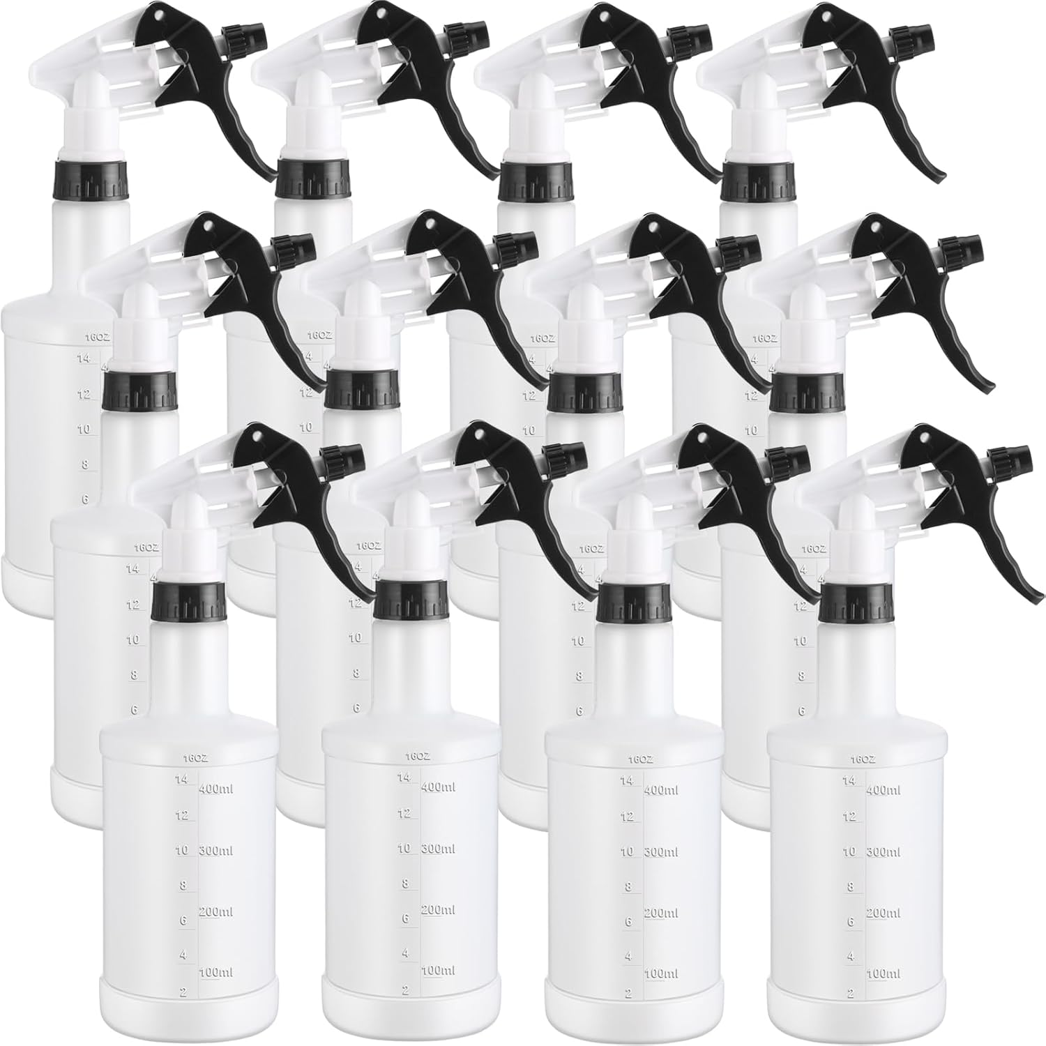 Eccliy 12 Pcs 16 Oz Plastic Spray Bottle, Adjustable Empty Reusable Sprayer for Cleaning, Planting, Water, Bathroom and Kitchen, BBQ, Commercial and Residential (Black,Measurement)