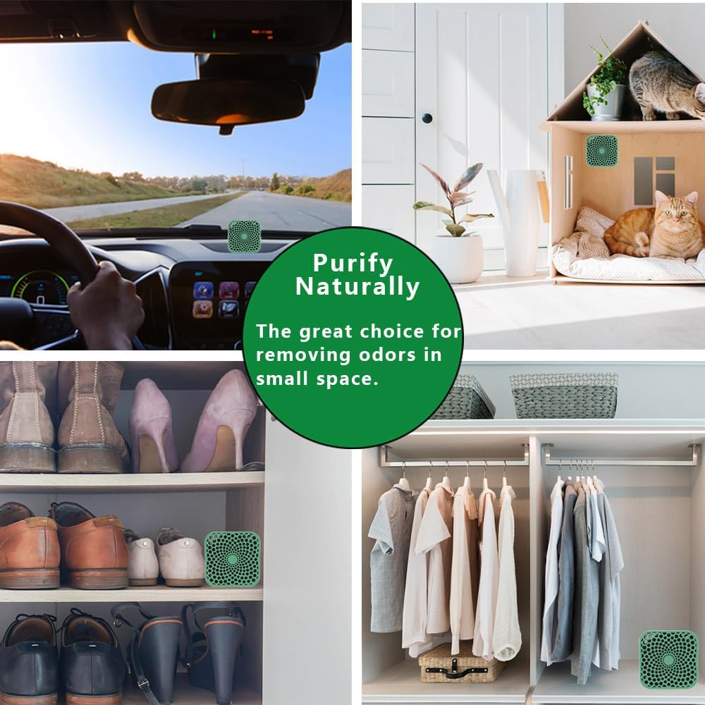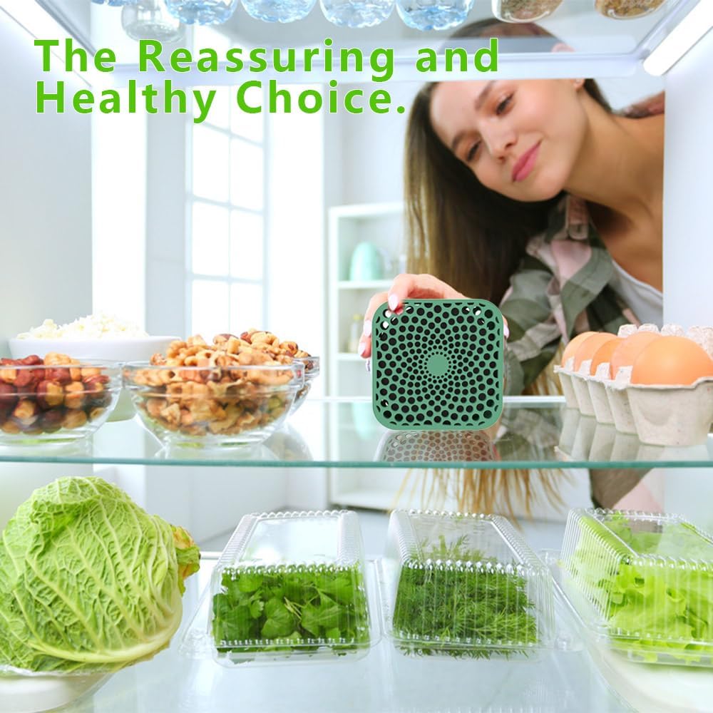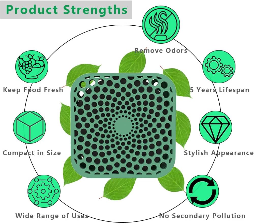 - Convenient and Compact&Having Diverse Uses: Refrigerator deodorizer measures 2.82*2.82*1.32 inches. With a compact size, it won't take up much space. Moreover, it has a trendy appearance design. You can not only place it in the refrigerator, but also use it for odor removal in the kitchen, wardrobe and other places.Refrigerator deodorizer is a thoughtful and practical gift for friends and family.