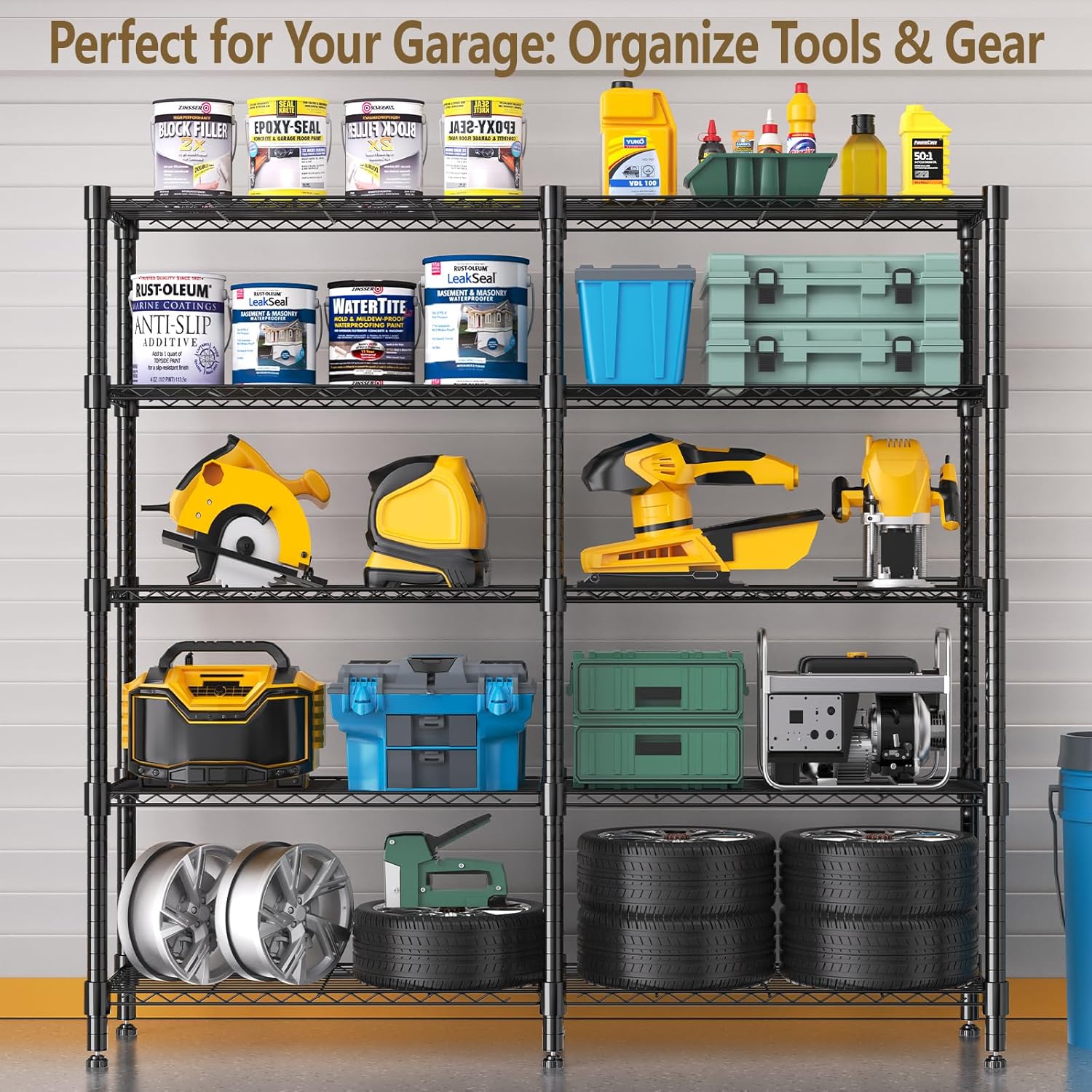 Himimi Storage Shelves-5 Tier Heavy Duty Wire Shelving Unit with Leveling Feet, 1500LBS Adjustable Metal Shelves Organizer for Kitchen Garage Pantry Laundry, 60" W*14" D*72" H, Black