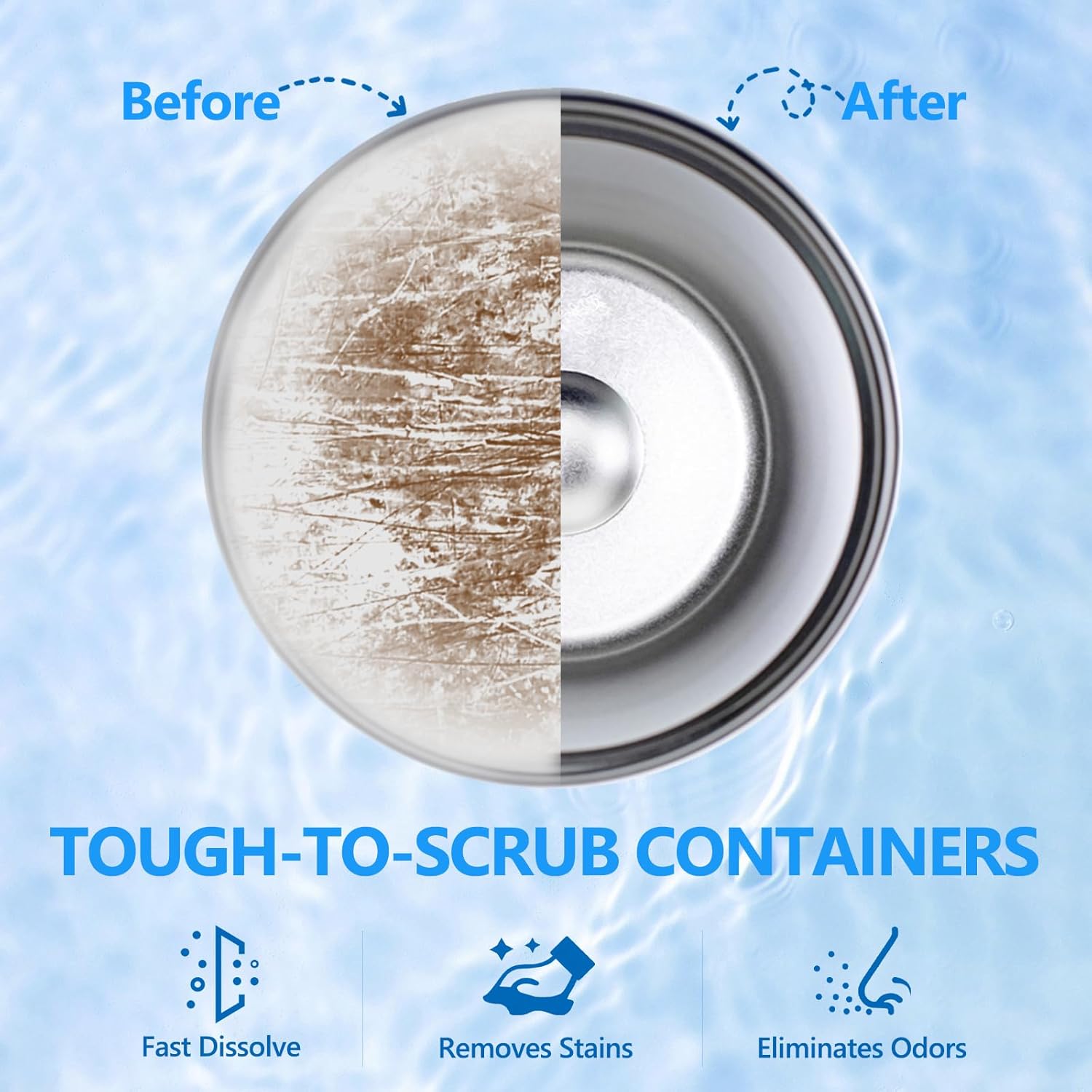 - Quick And Easy&No Scrubbing Required: The bottle clean tablet starts cleaning instantly after contact with water. Natural water bottle cleaning tablets can perfectly clean any stainless steel water bottle, coffee tumbler, glass water bottle, cup, water bladders, baby bottle, hard to clean plastic containers and more.
