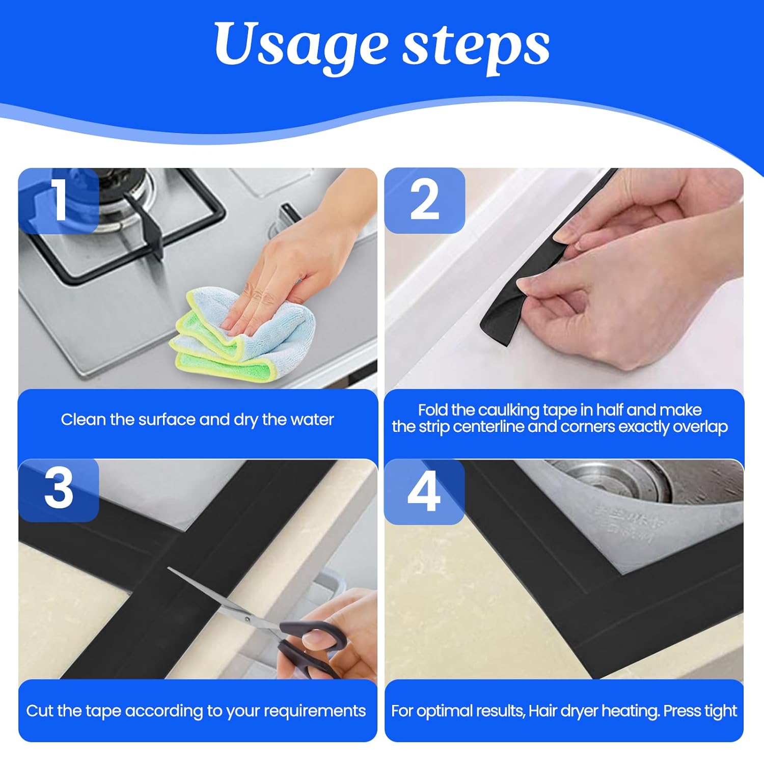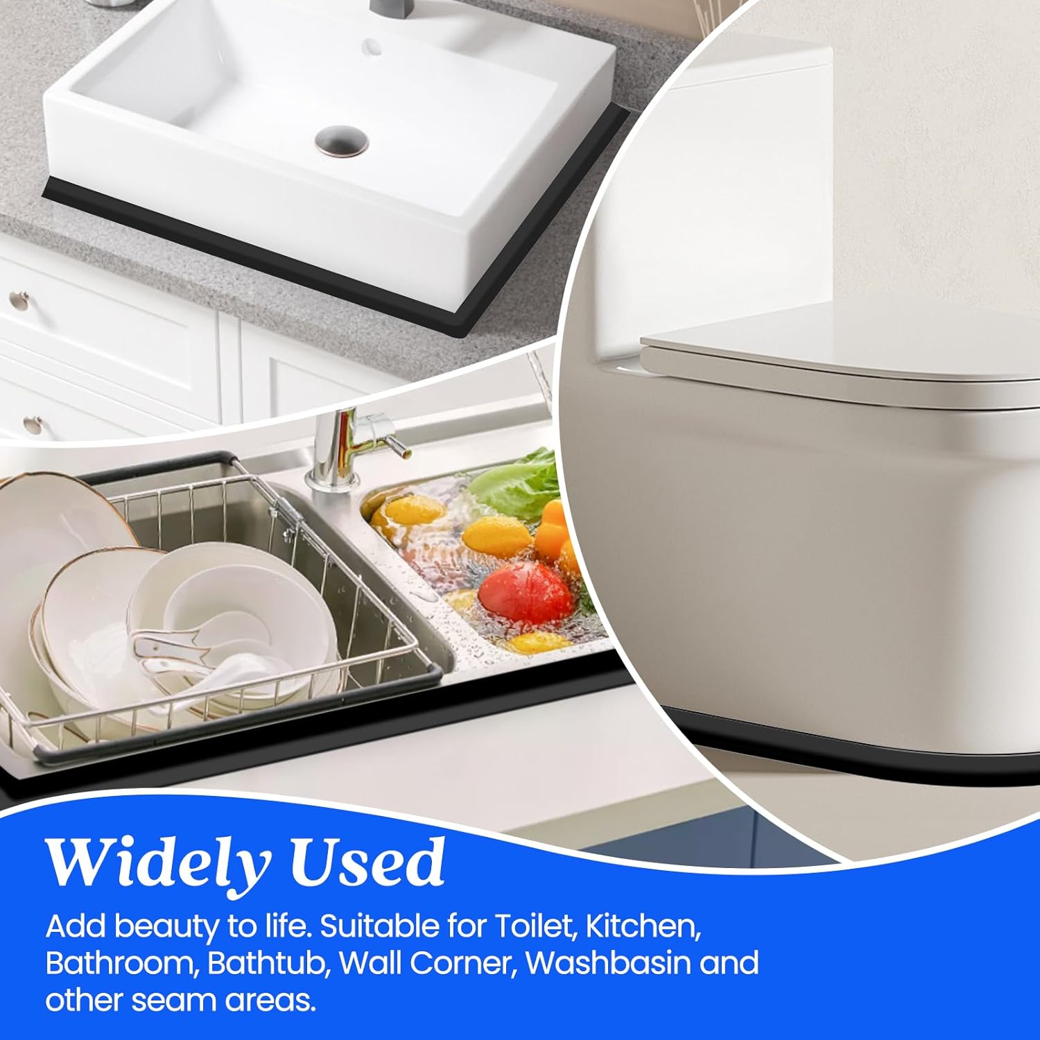- ✅Wide Applications: Self-adhesive sealant tape is widely used for sealing joints in toilets, bathroom, kitchen, sinks, pools, bathtubs, gas stoves and walls. The shower seal strip can prevent them from blackening and keep your kitchen and bathroom clean and tidy.