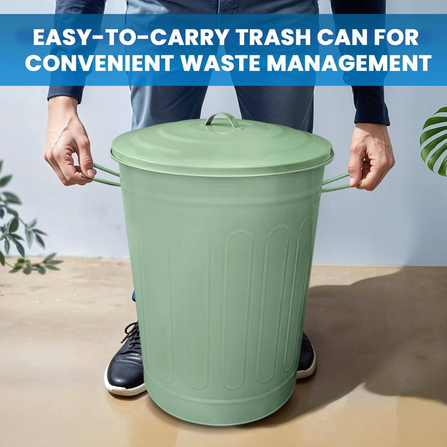 - Durable Construction: The Plexon 13-gallon galvanized steel trash can with lid is made from heavy-duty materials, perfect as an outdoor trash can with lid or a farmhouse garbage can for your kitchen, garage, or home.