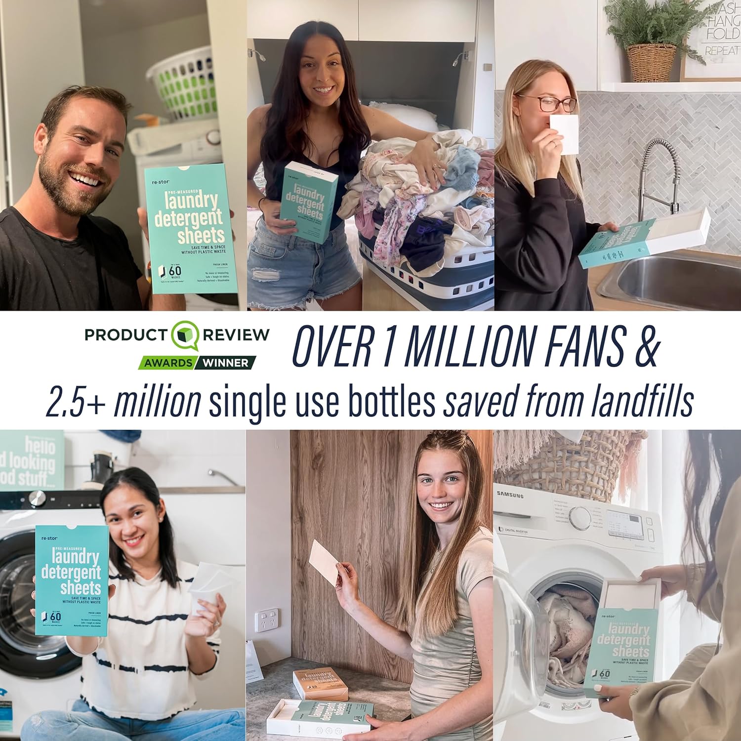 - PROVEN TO FIGHT STAINS BETTER THAN OTHER BRANDS: Enhance your laundry routine with Restor Laundry Detergent Sheets that have been independently tested to remove common household stains better than the leading Laundry Sheet brand. Each ultra-concentrated, dissolvable sheet tackles stains, odors, and buildup with 94% naturally derived ingredients, delivering a powerful clean, without compromise.