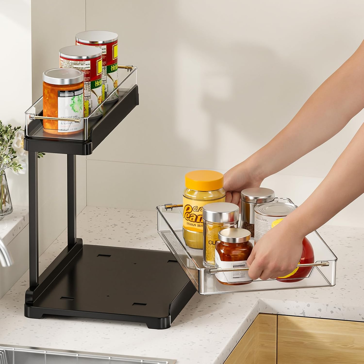 heart & home 1-Pack Under Sink Storage Organizer for Kitchen & Bathroom Cabinets with Removable Washable Tray, Tool-Free Assembly – Multi-Purpose for Kitchen Countertop, Vanity, & Laundry Room,Black