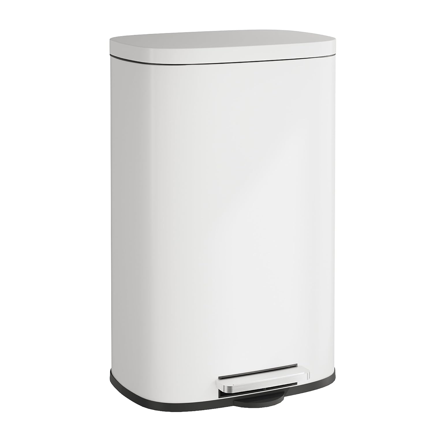 WLIVE 13 Gallon Stainless Steel Trash Can with Inner Bucket, Kitchen Garbage Can with Lid, 50L Soft Close Step Trash Can with Metal Foot for Home, Kitchen, Laundry Room, Office, White