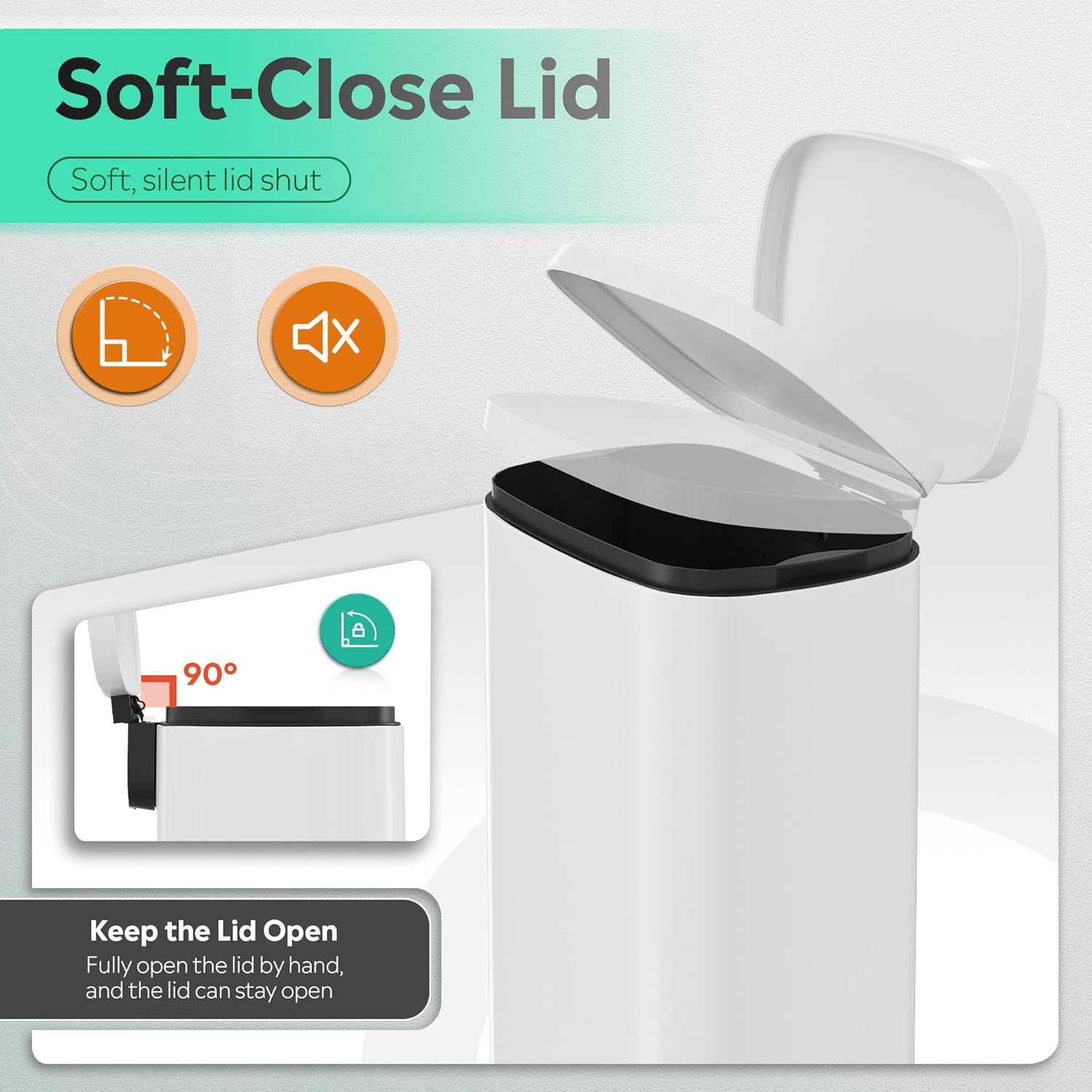 - Ultra-Large Capacity: Effortlessly handle daily waste with a 13-gallon (50L) capacity—perfect for large families looking to reduce trips to the trash. The trash can blends seamlessly into kitchens, living rooms, or home offices with its modern, clutter-free design.