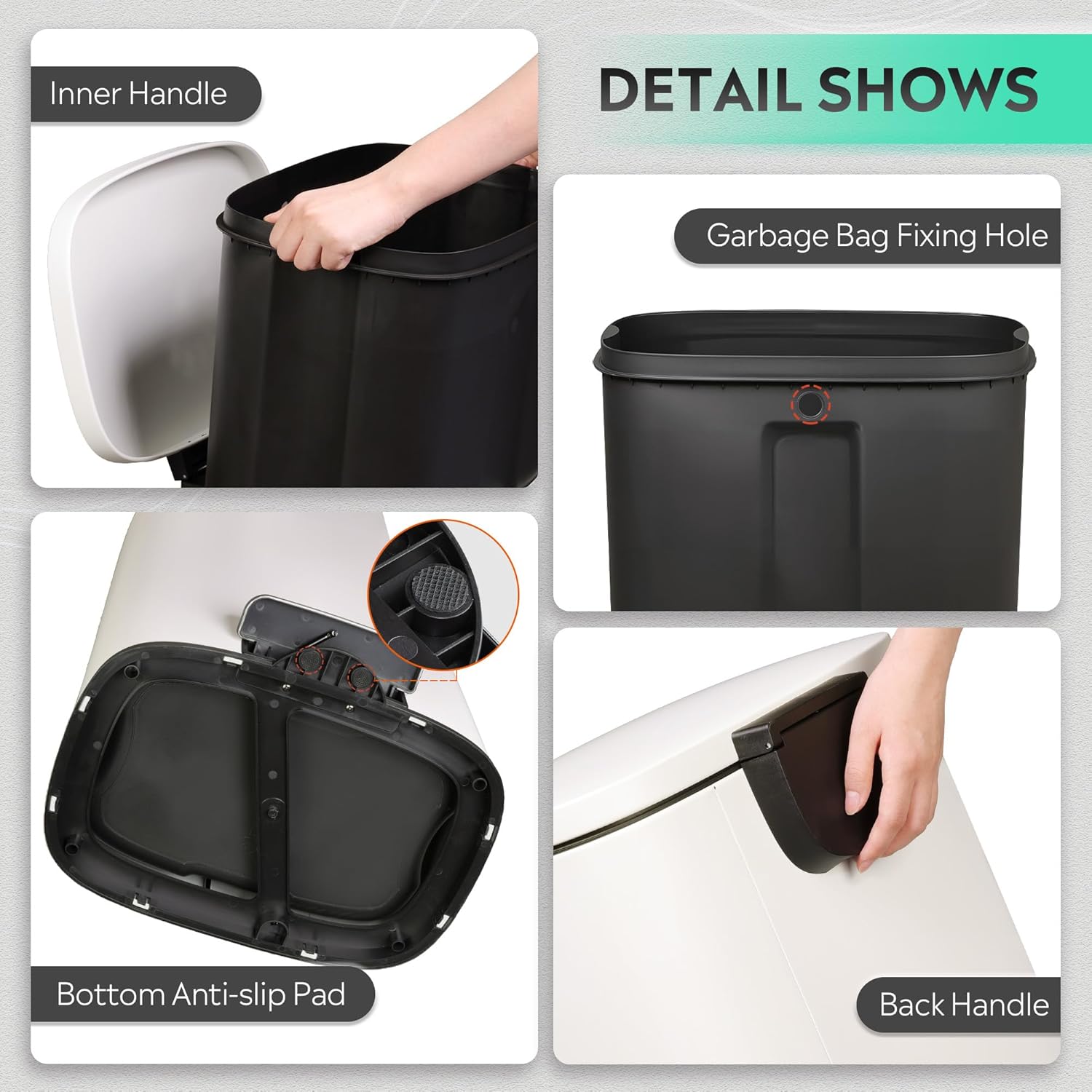 - Easy to Lift: The removable inner liner features bag cinch holes to prevent trash bags from slipping off, and both the liner and the can’s back have handles for easy lifting and emptying.