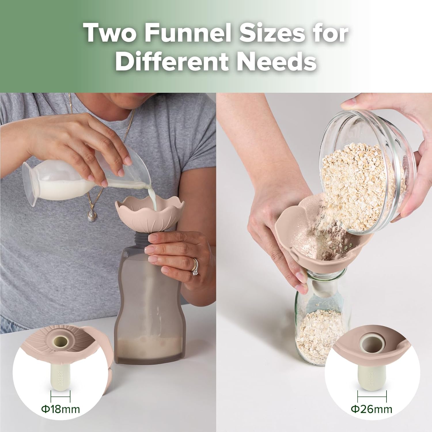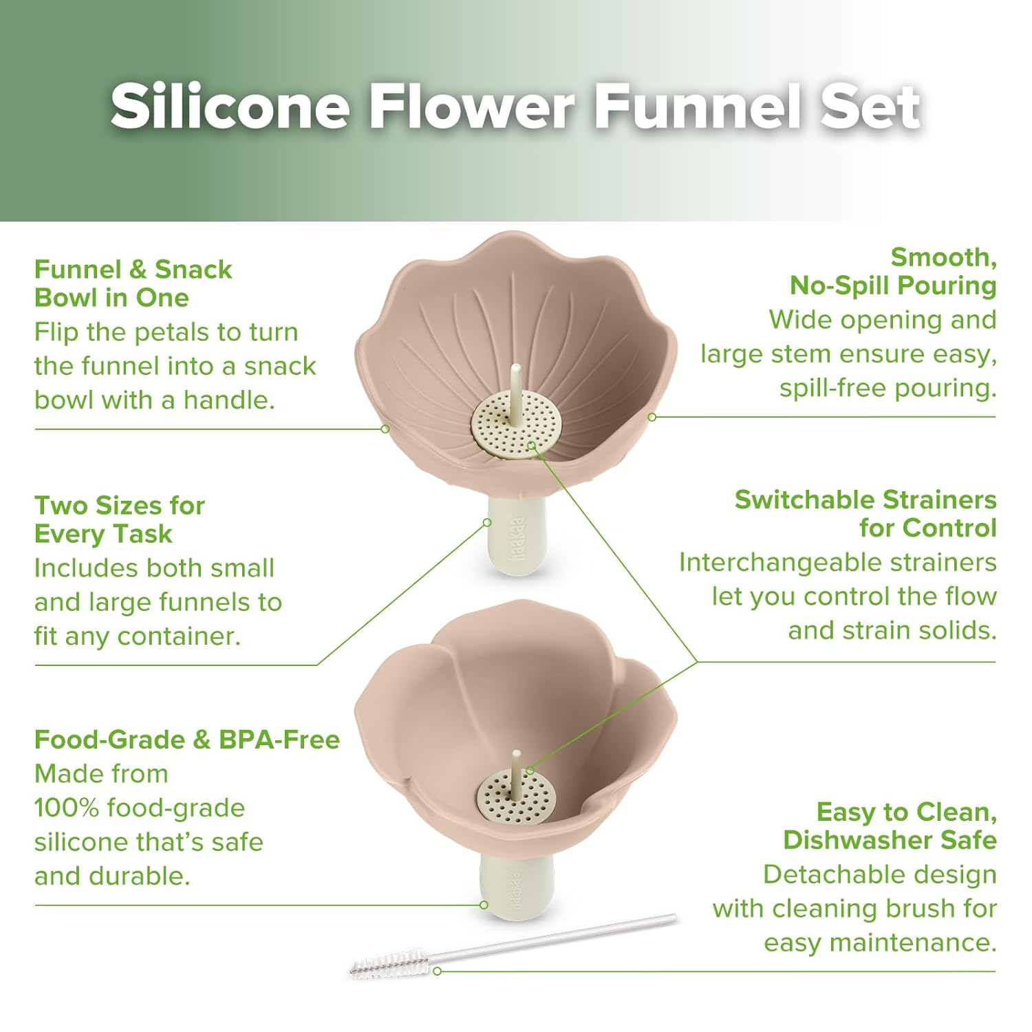 Haakaa Silicone Flower Funnel Set β Dual-Size Silicone Funnels for Kitchen Use, Small Funnels for Filling Bottles, Compatible with Haakaa Pouches