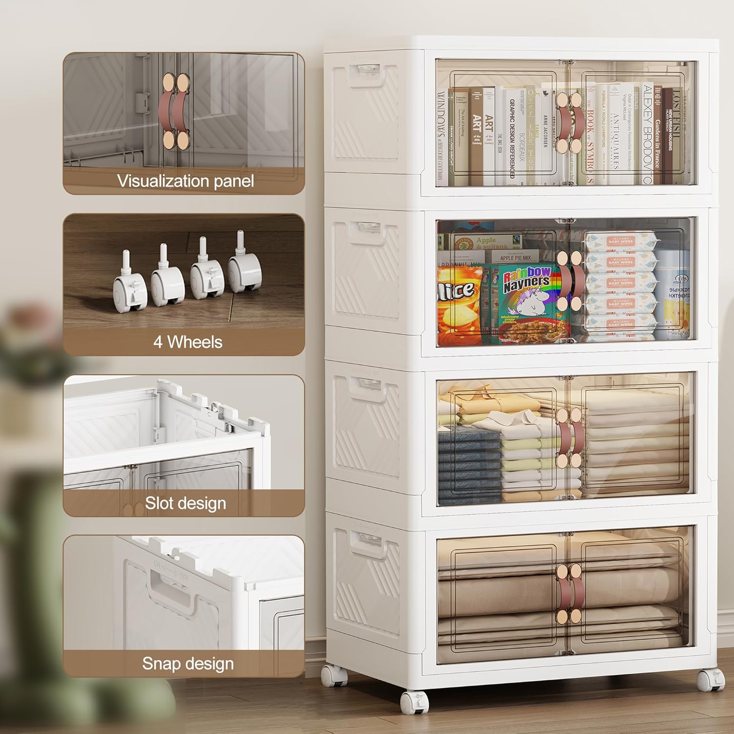 - 【Smooth Rolling Convenience】Utilise our four wheels (2 regular + 2 wheels with brake pads) - glide your storage bin easily over any floor surface. Ultra-quiet wheels ensure seamless movement without scratches or noise, while a secure locking mechanism keeps the stacking storage bin firmly in place during storage.