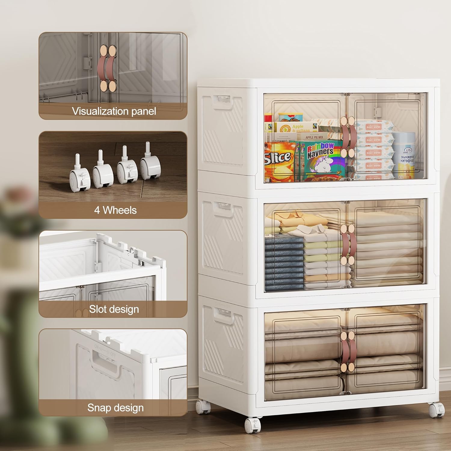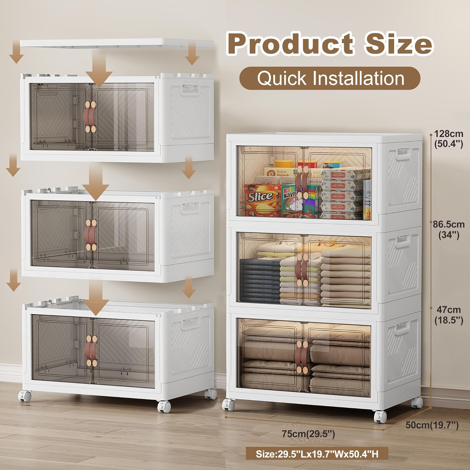 - 【Smooth Rolling Convenience】Utilise our four wheels (2 regular + 2 wheels with brake pads) - glide your storage bin easily over any floor surface. Ultra-quiet wheels ensure seamless movement without scratches or noise, while a secure locking mechanism keeps the stacking storage bin firmly in place during storage.