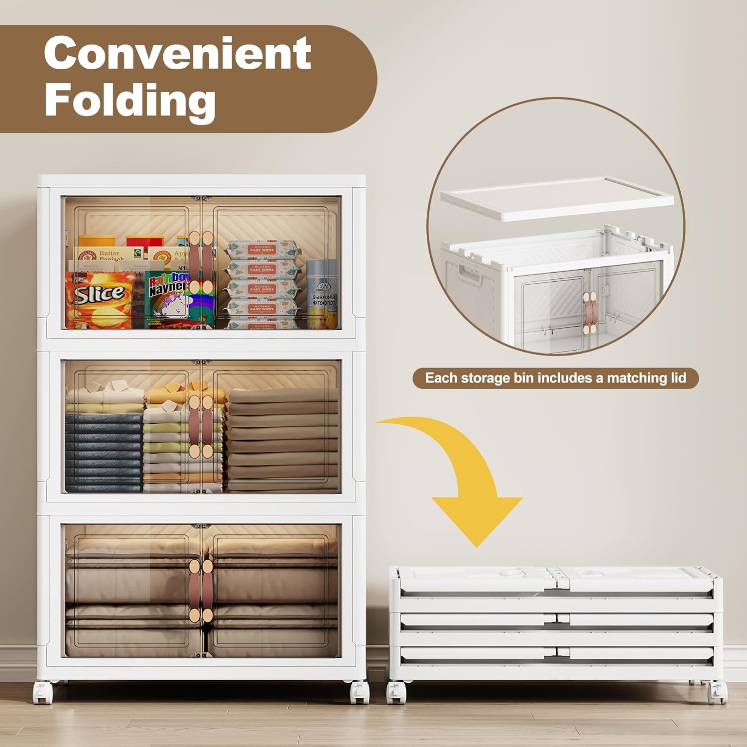 SAILUN 135QT Extra Large Collapsible Storage Bins with Wheels and Lid, Stackable Storage Bins Open Closet Organizers and Storage Storage Containers Drawers,19.7" L × 12.6" W × 34.8" H(3 Pack)