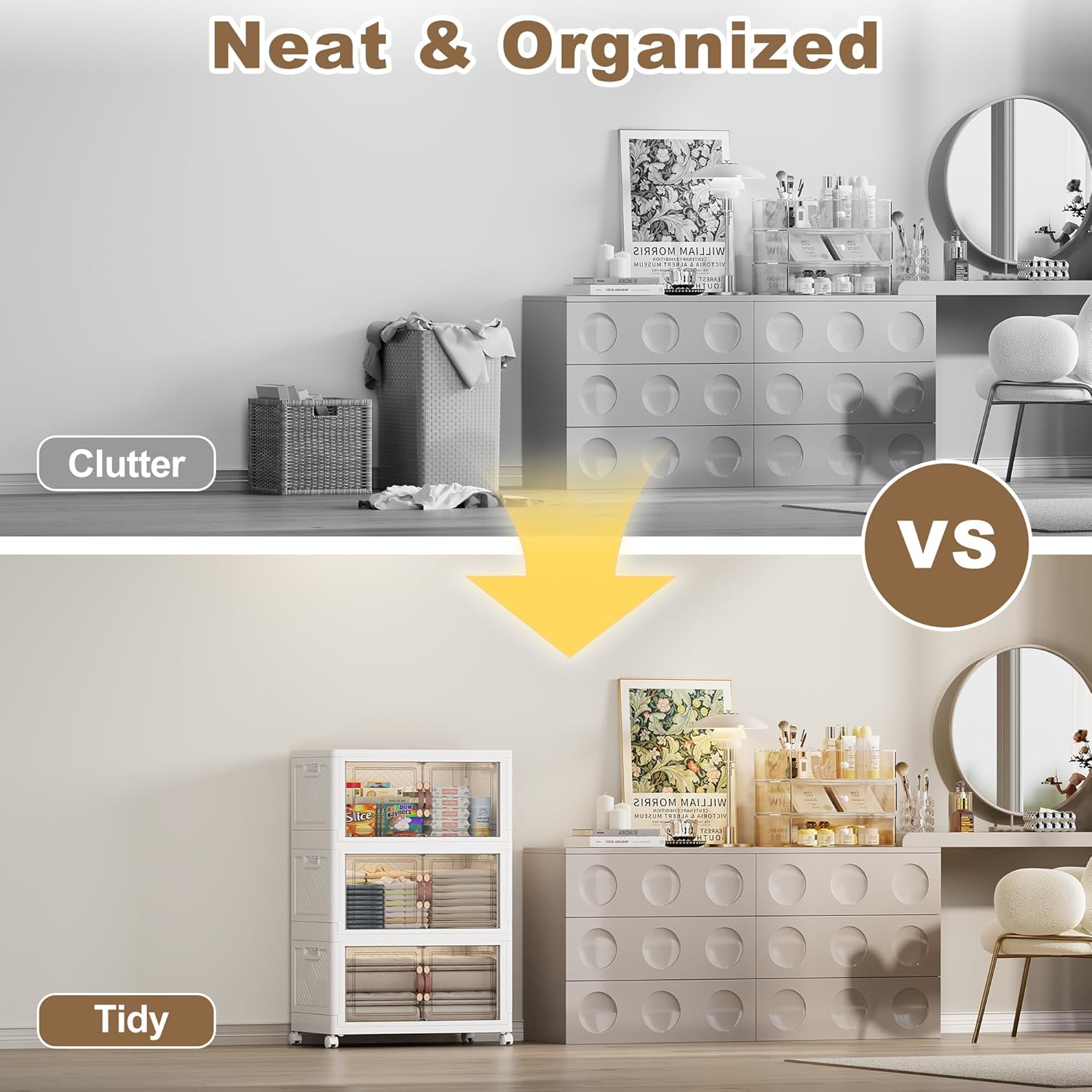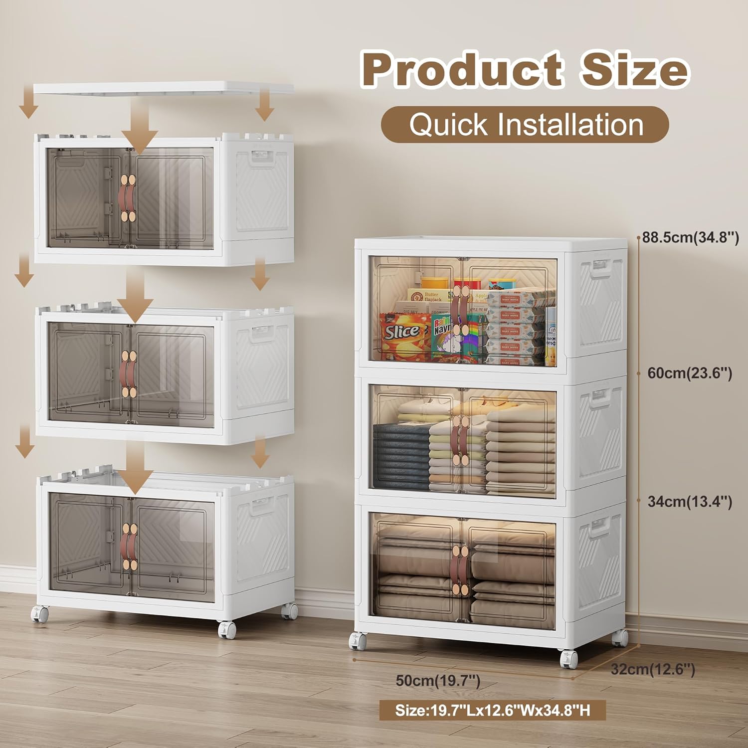 - 【Smooth Rolling Convenience】:Utilise our four wheels (2 regular + 2 wheels with brake pads) - glide your storage bin easily over any floor surface. Ultra-quiet wheels ensure seamless movement without scratches or noise, while a secure locking mechanism keeps the stacking storage bin firmly in place during storage.