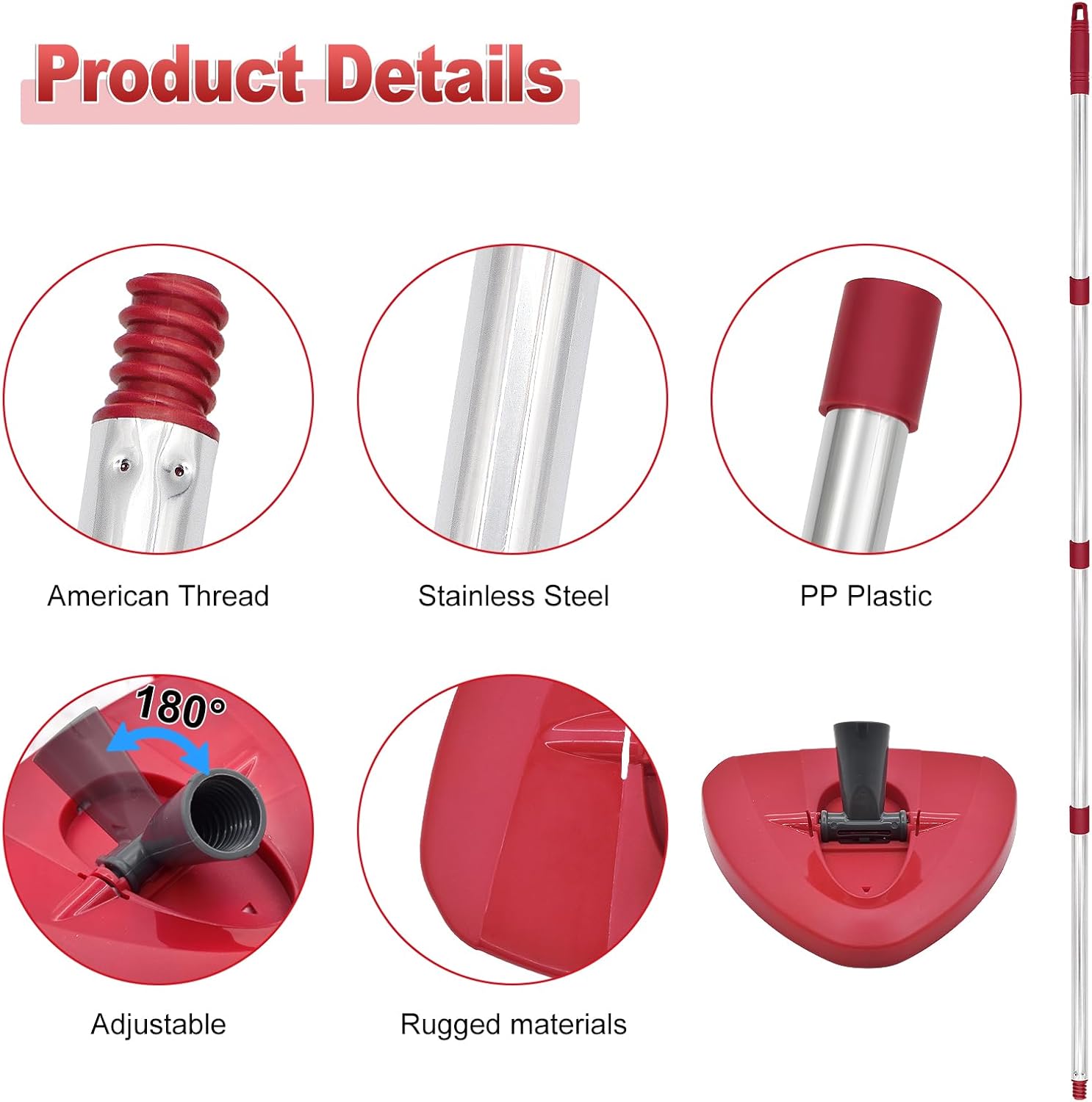 - Easy to install: 4-Section Mop handle and base set is built for long-lasting performance, crafted from high-quality stainless steel and durable plastic. Its simple installation allows you to quickly set up and get to work, making your cleaning routine more efficient and hassle-free.