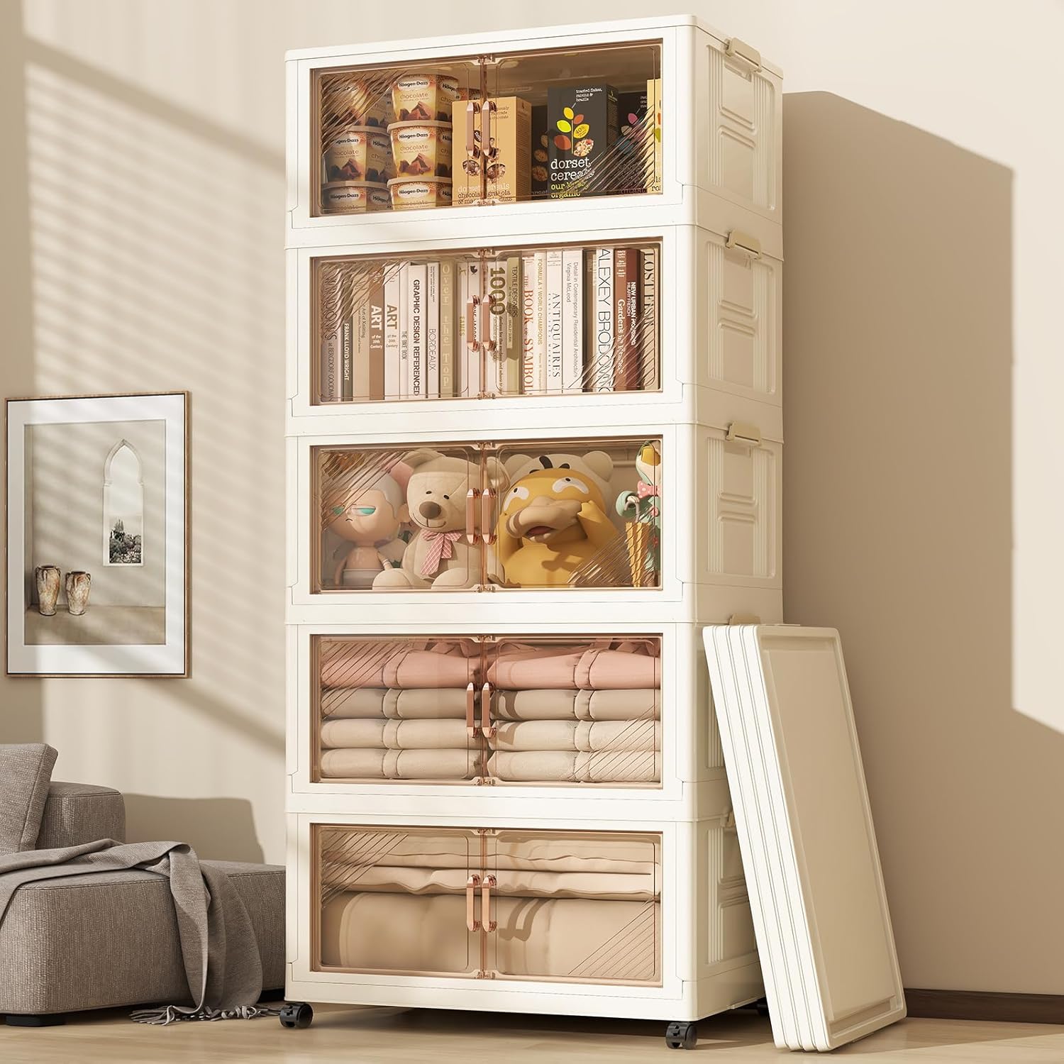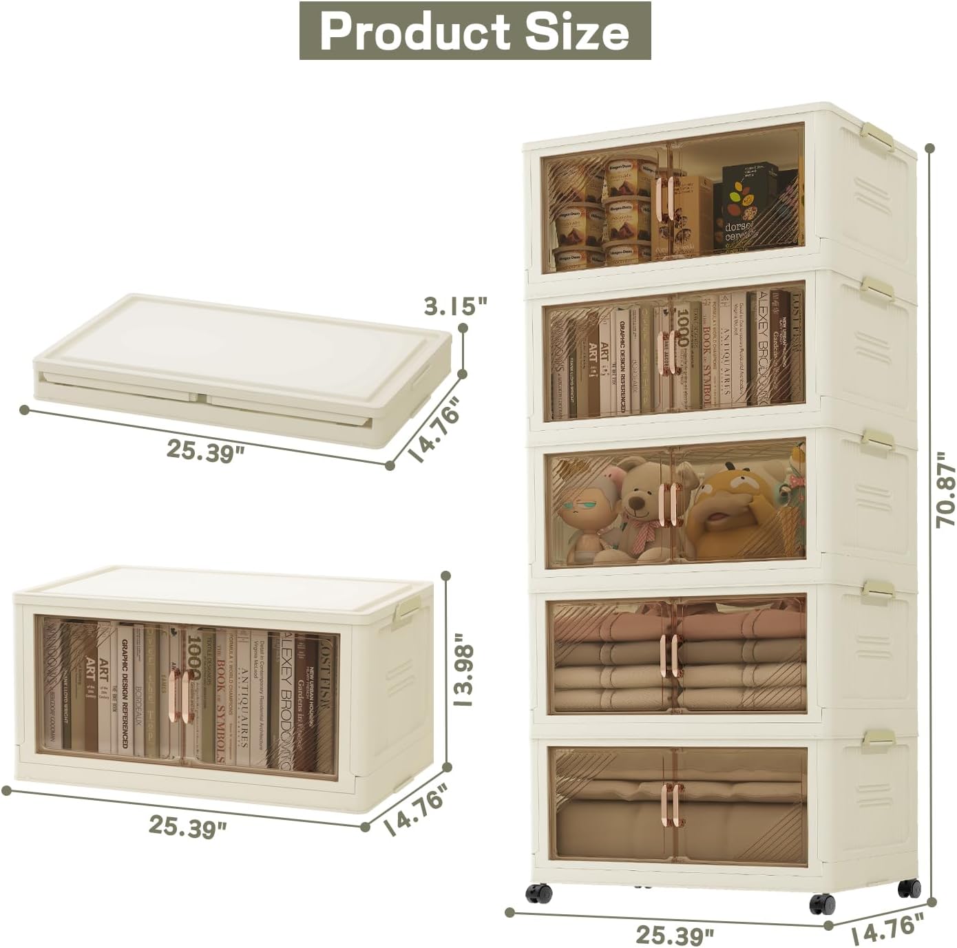 - 【Comes with 5 Lids】Each tier of this storage bin comes with a top lid! Use them together or separately as needed. Made from durable, heavy-duty PP plastic, these collapsible bins feature four flexible wheels at the base for easy movement while cleaning.
