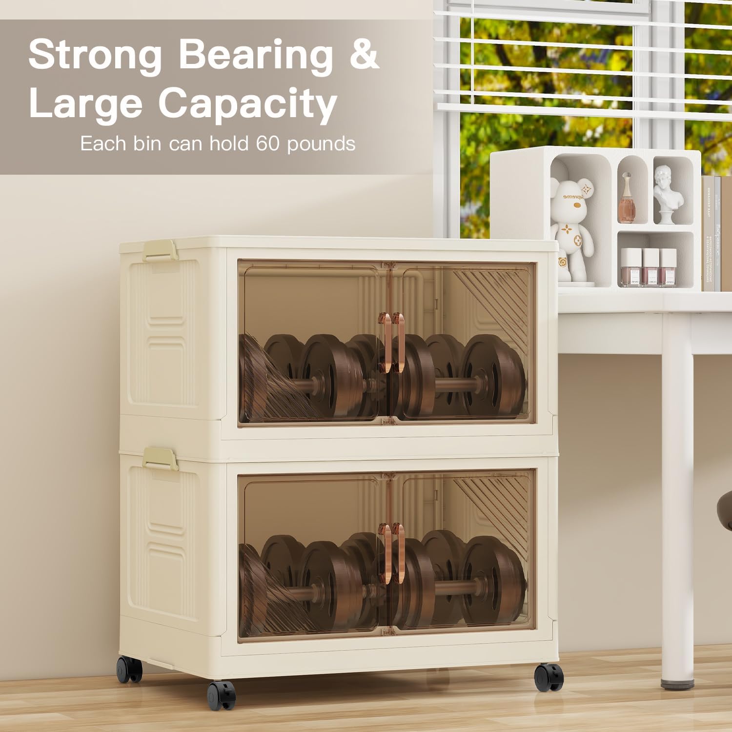 - 【Large Capacity】With a spacious 92-quart capacity, these foldable bins hold up to 155 lbs (70 kg). Side handles make lifting easy, providing a practical storage solution to keep your home organized.