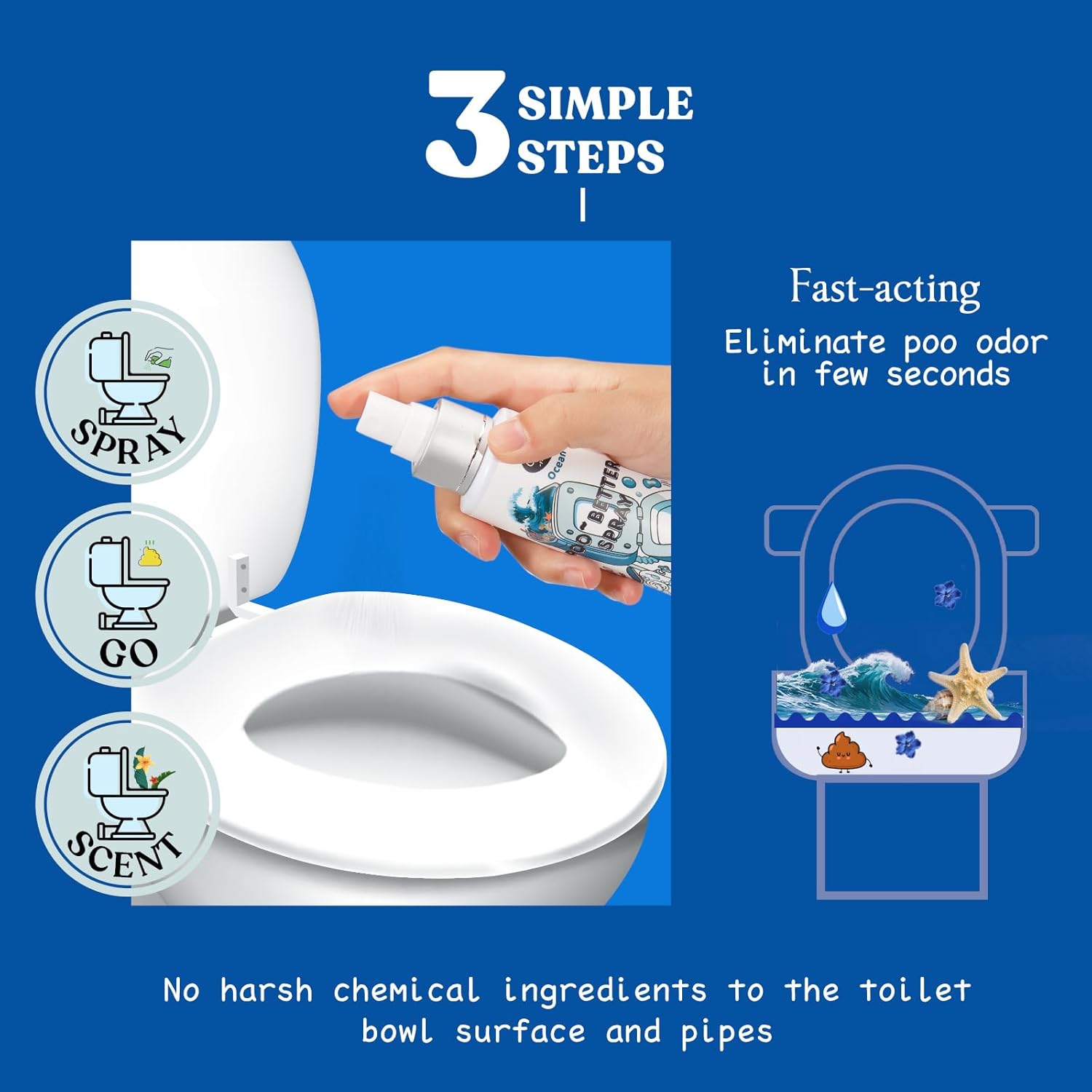 - HOW IT WORKS: Shake it well. Just spritz 2~4 sprays on the water's surface, to lock down unpleasant odor below the water, then do your business with confidence