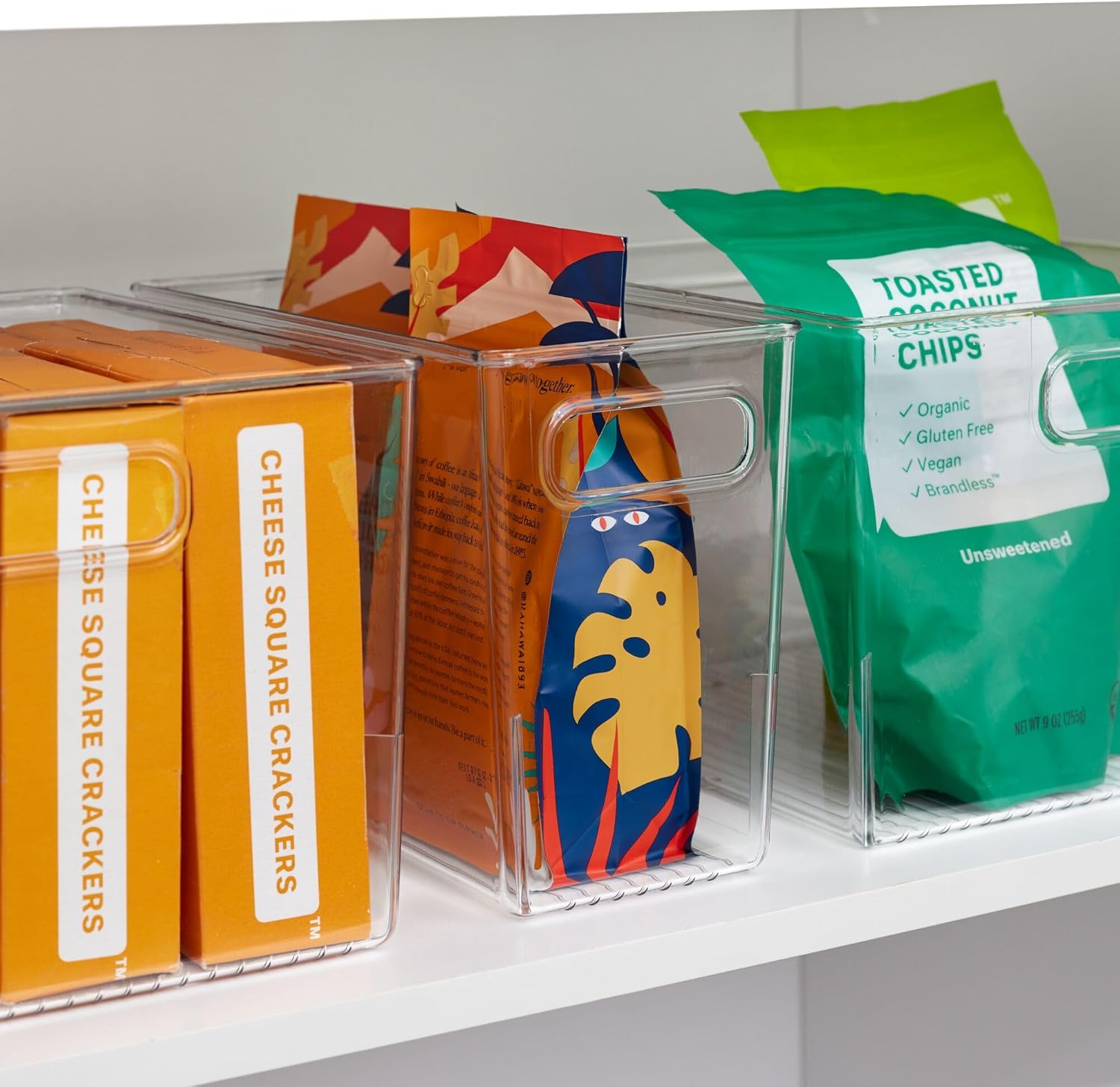 - SMART STORAGE - Create a system of order with the iDesign Plastic Storage Bins; Its crystal-clear construction offers unobstructed views of everyday items, and its open-top design allows for easy accessibility, simplifying item location and retrieval; From cabinets to countertops, this storage bin set creates a cohesive look, bringing a hint of luxury to your daily routine while keeping clutter under control; Set of 8