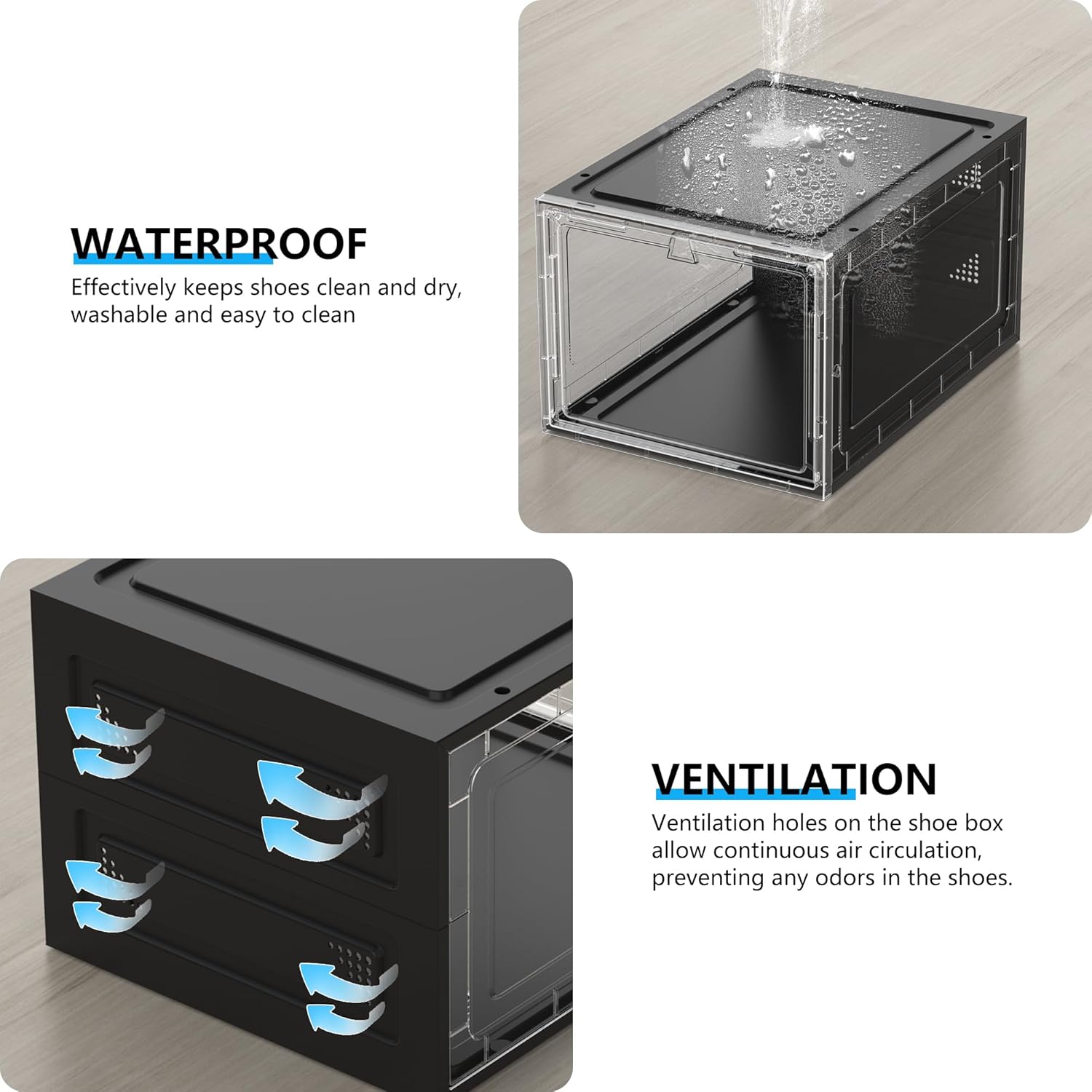- Upgraded Hard Shoe Boxes:Say goodbye to soft plastic shoe boxes! Made of from sturdy hard plastic on all six sides, our shoe boxes boast exceptional durability and load-bearing capacity. Additionally, their transparent design ensures easy viewing of your shoes.
