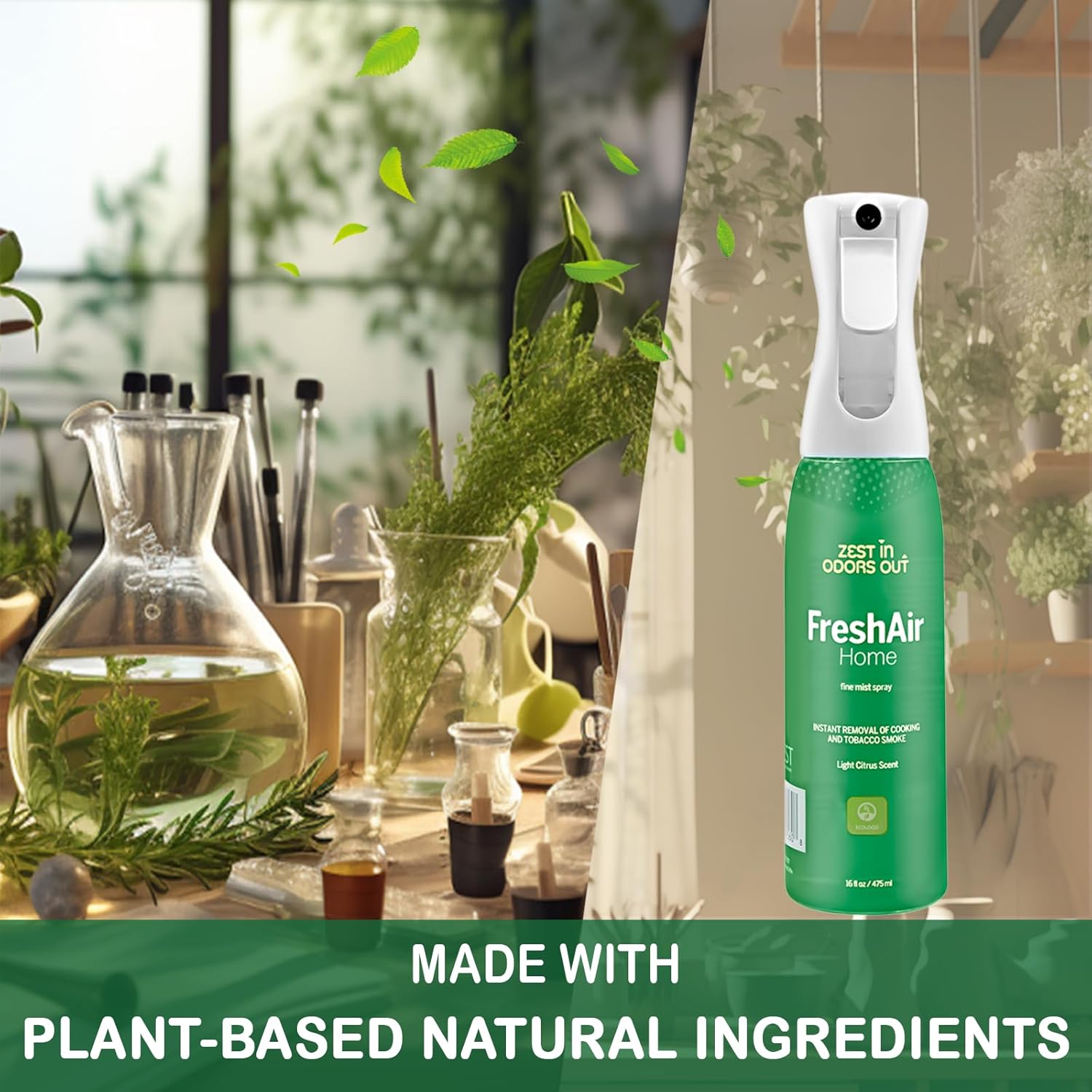 - Natural and Safe Ingredients - Effective odor elimination does not mean using of harsh chemicals. Our plant-based formula is nature’s chemistry, ensuring a safe and fresh environment for your family and pets, adhering to the highest safety standards. FreshAir Home NEVER contains Dyes, Acetones, Parens, Siloxanes, Phthalates, Formaldehyde, and other lab-created chemicals.