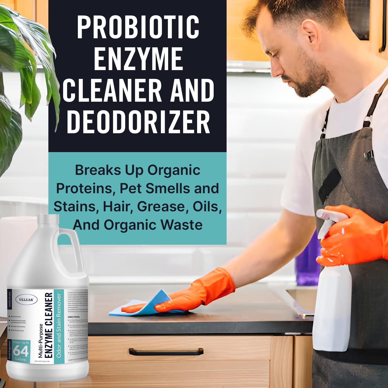 Multi-Purpose Probiotic Enzyme Cleaner, Made in USA - Pet Stain and Odor Remover - Concentrated - Professional & Home Strength Drains, Floors, Bathrooms, Toilets Trash Can, (1 gallon, Fresh fragrance)