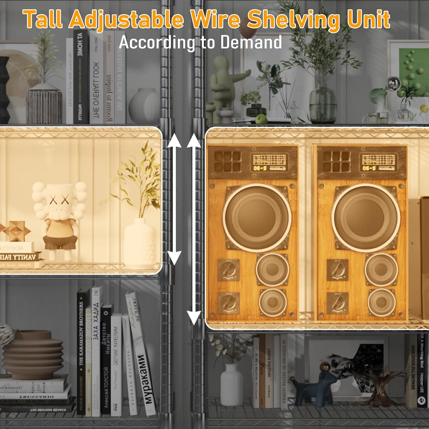 - 【ADJUSTABLE SHELF】Each layer of the wire shelf can be adjusted to match the height of your items, optimizing your storage space. Additionally, you can join two storage racks to form a wider unit, providing extra width to meet your needs.No matter your requirements, you can assemble a shelf configuration that fits just right