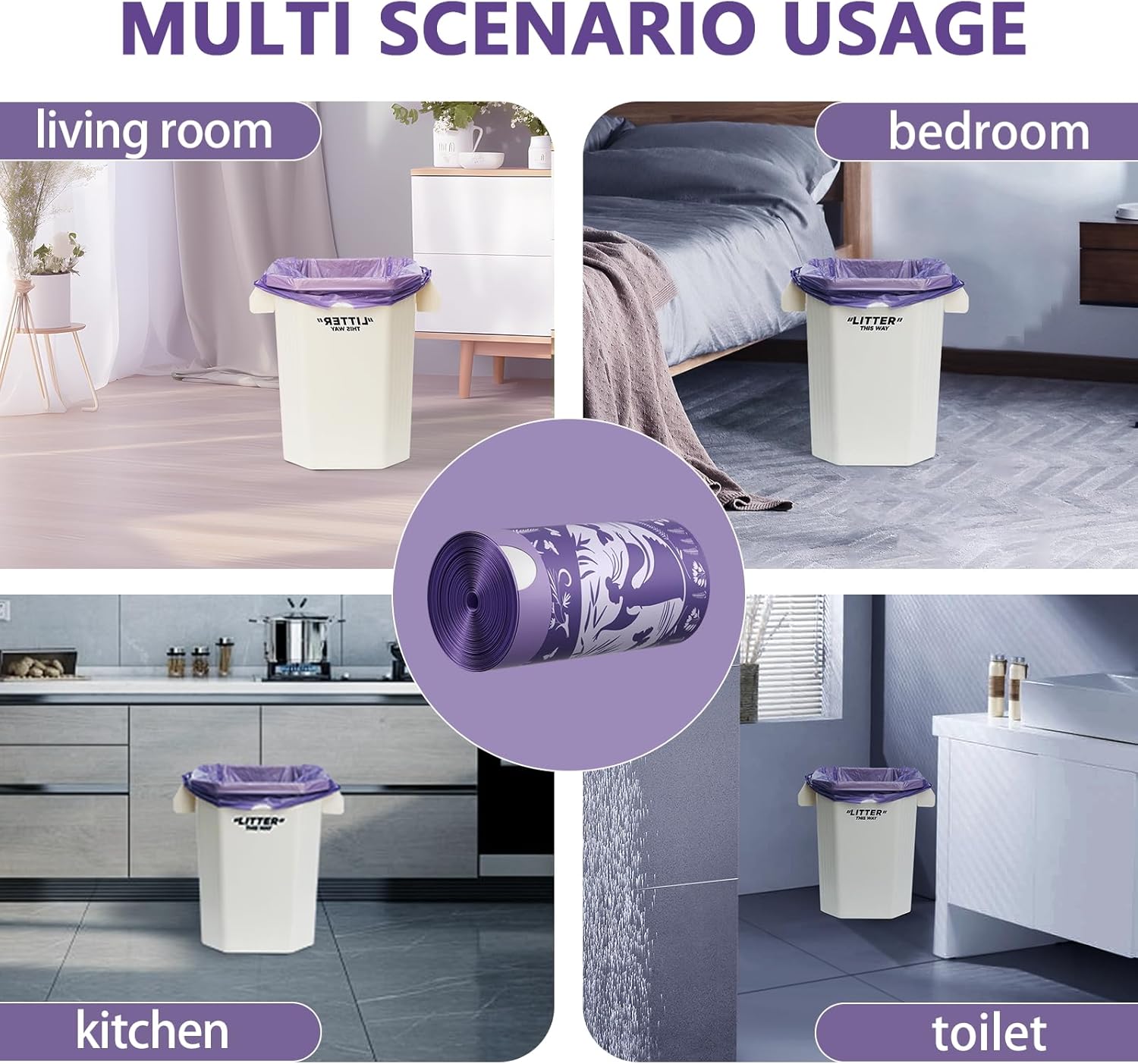 - 【Appearance Design】 : Our garbage bags are also printed with beautiful butterfly and lavender prints, close to the natural purple design style. They are beautiful and generous, and give people a visual freshness. With our 8 gallon garbage bags drawstring, you can enjoy cleaner and easier disposal