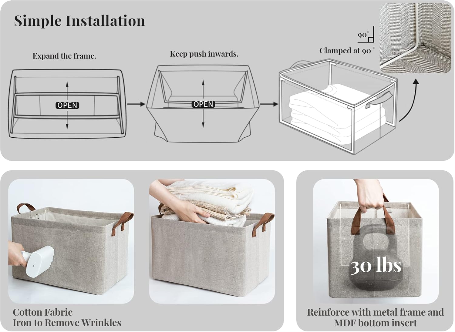 - The storage baskets for shelves are easy to assemble and collapsible for compact storage when not in use.